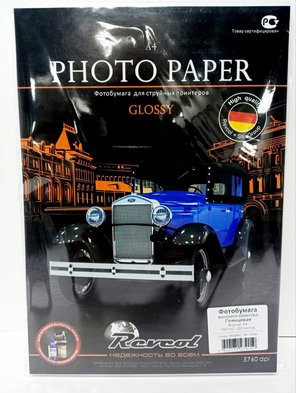 Фотобумага Revcol A4 глянцевая для струйных принтеров 180 гр/м2, 100 листов информация: