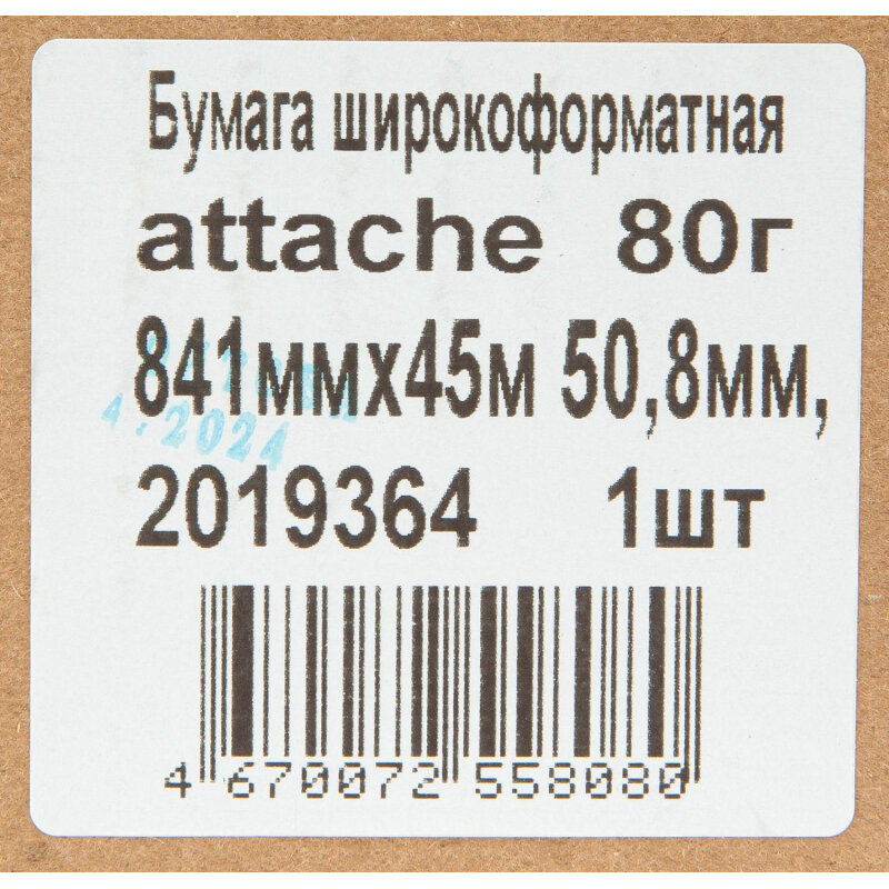 Комплект 2 рул, Бумага широкоформатная Attache 80г 841ммх45м 50.8мм информация: