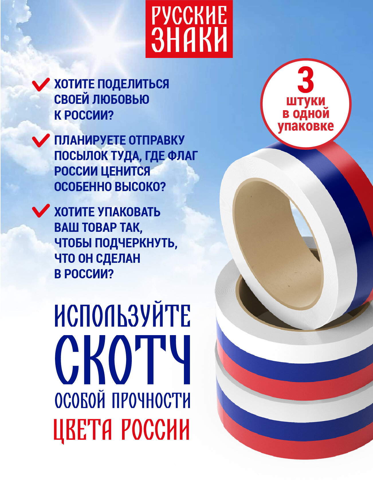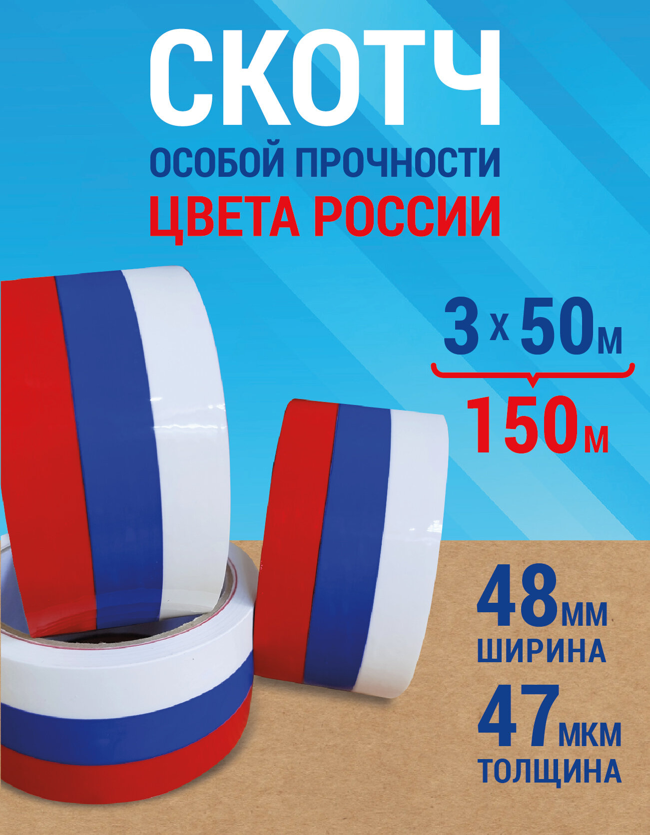 Скотч Триколор, набор 3 шт, особая прочность информация: