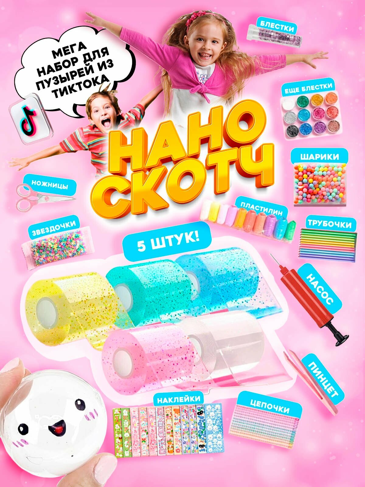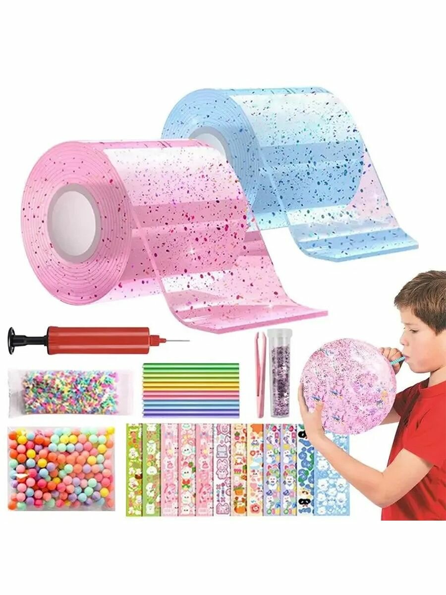 Двусторонний скотч нано 5 цветов антистресс для шаров из тик ток большой набор надувающаяся клейкая лента информация: