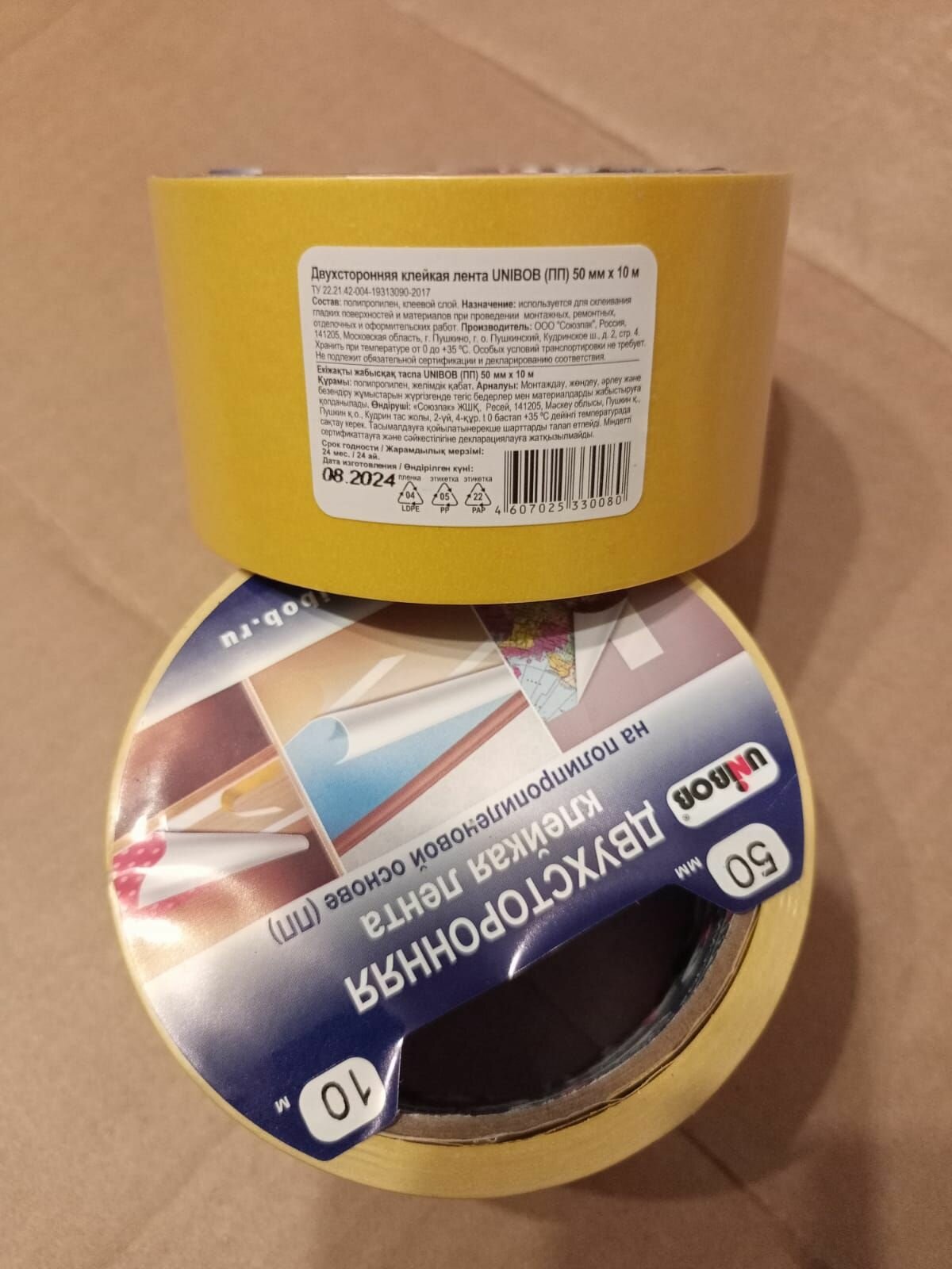 Скотч двухсторонний UNIBOB, 38 мм x 10 м, 6 шт. полипропилен 895 ₽
