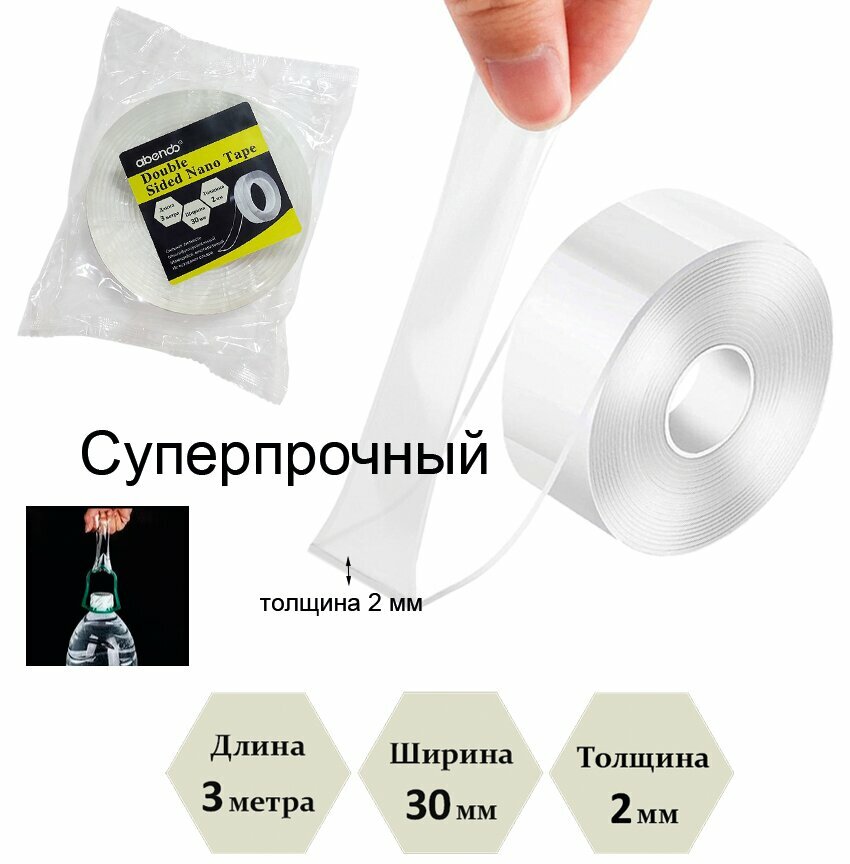 10 цен на Нано скотч. Двусторонняя клейкая лента многоразовая (2 мм) 3см х 3м.