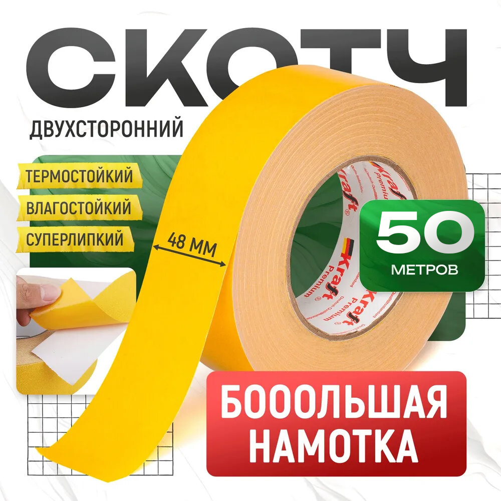Отзывы на Двухсторонний скотч Kraft, полипропиленовый, каучуковый клей, 48мм х 50м двусторонний скотч скотч двухсторонний