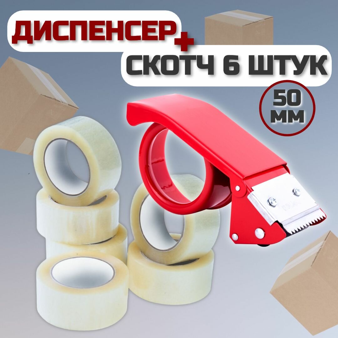 Набор диспенсер металлический и скотч 6 штуки 50мм информация: