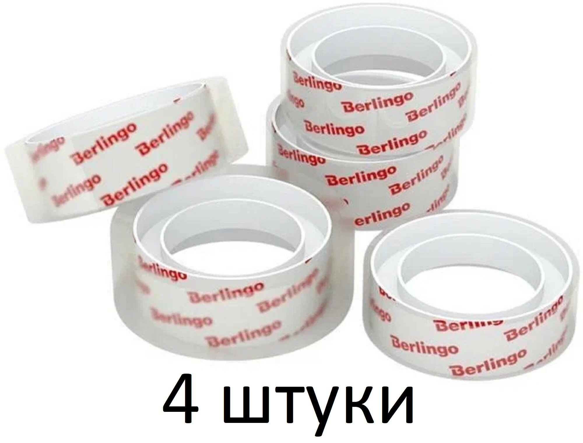 10 цен на Клейкая лента канцелярская 15 мм х 10 м Berlingo, прозрачная, набор 4 шт