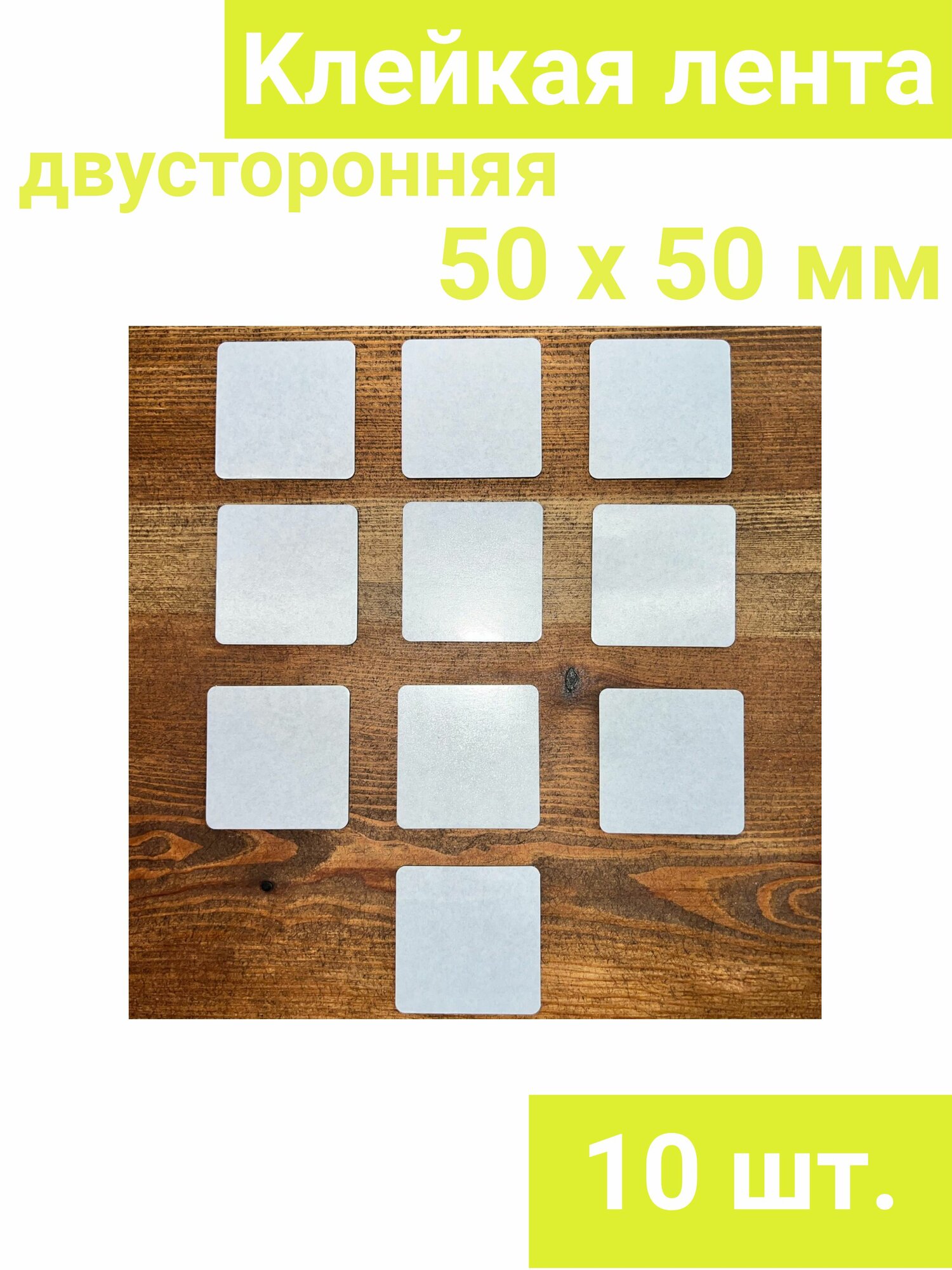 Скотч двухсторонний, клейкая лента двусторонняя, клейкие пластины, 50 х 50 мм, 10 шт. информация: