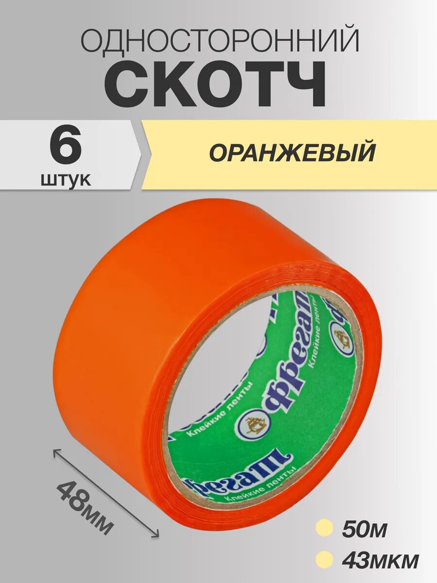 Скотч оранжевый Фрегат широкий 48мм 50 метров 43мкм, 6 роликов в упаковке информация: