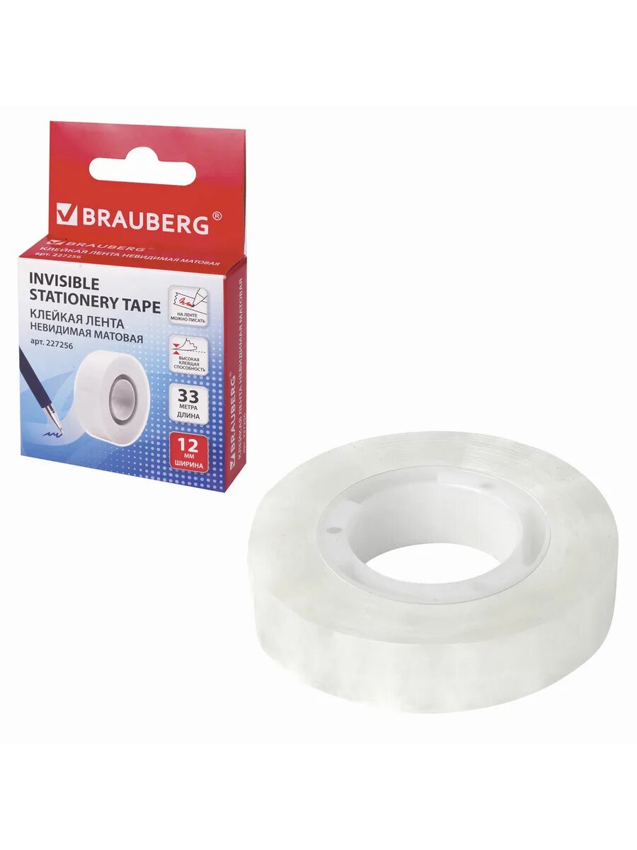 10 цен на Клейкая лента невидимая, матовая, 12 мм х 33 м, BRAUBERG, 2
