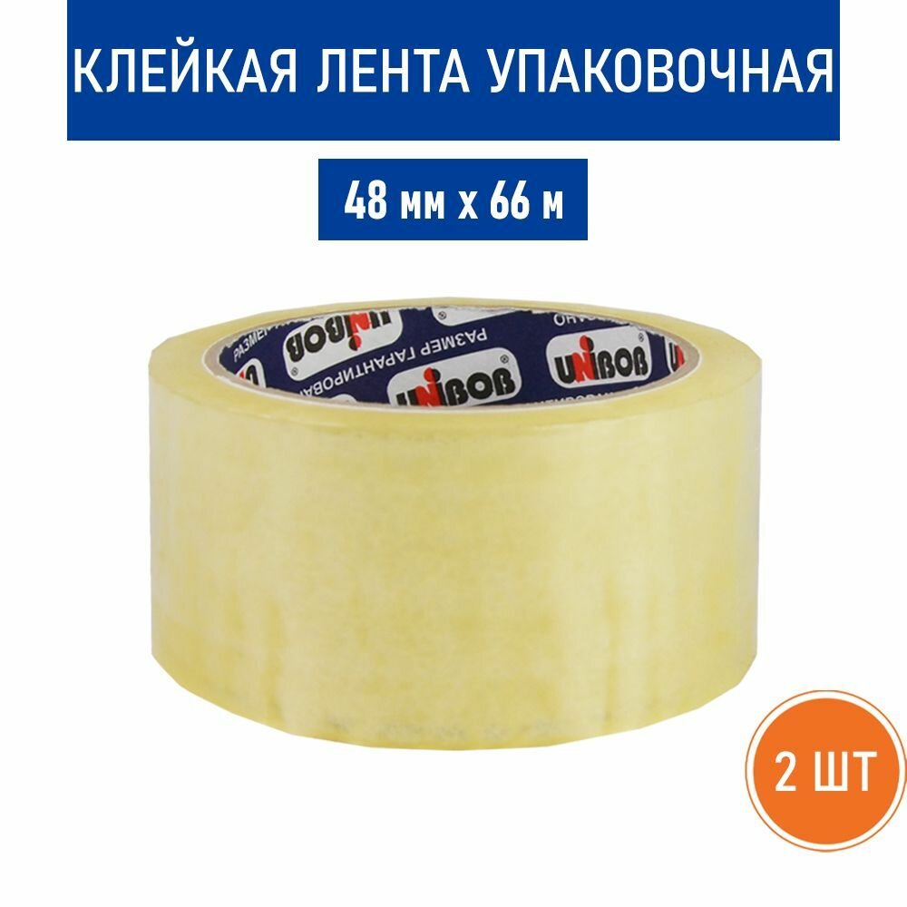 Клейкая лента упаковочная Unibob 500 прозрачная 48 мм х 66 м, толщина 43 мкм, 2 шт