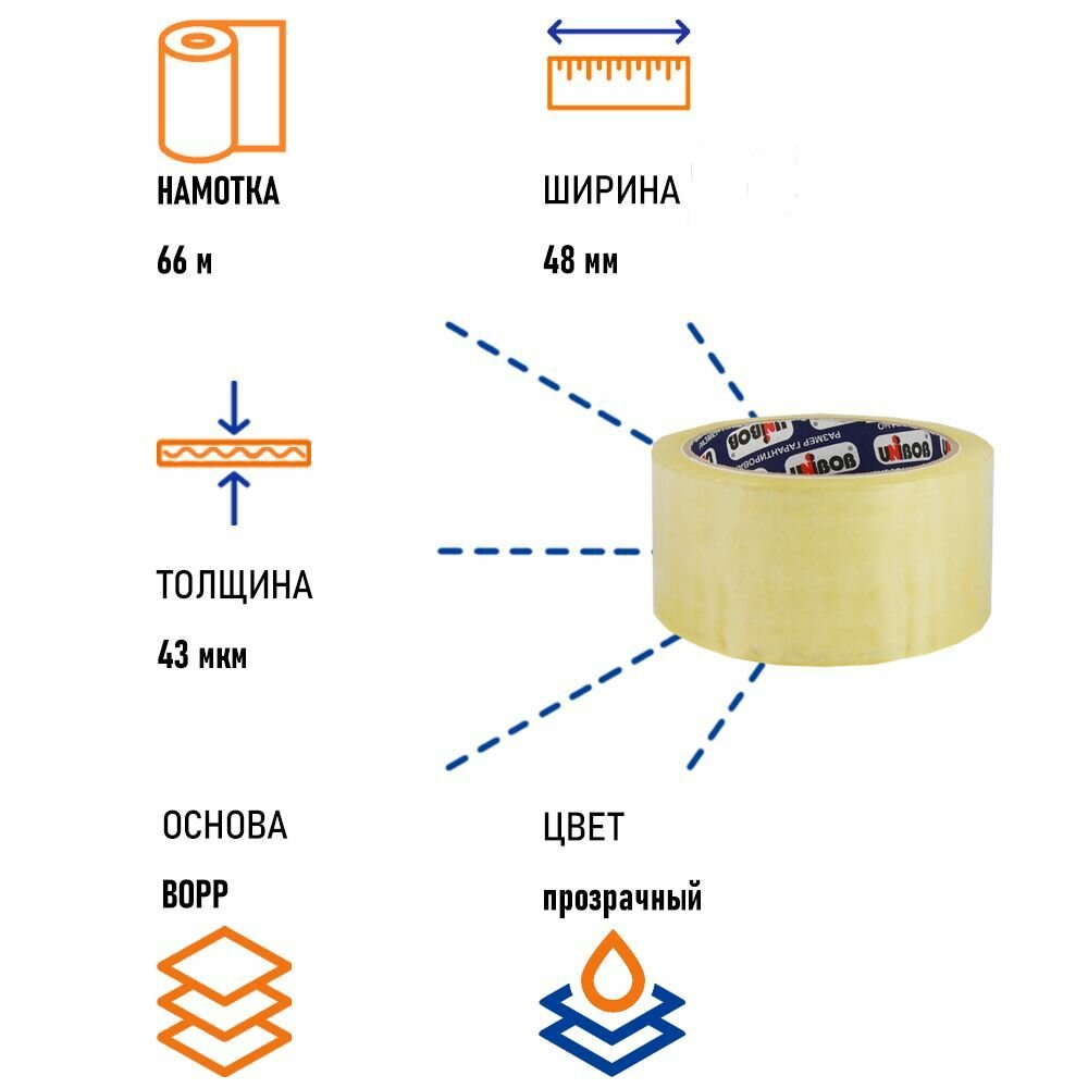 10 цен на Клейкая лента упаковочная Unibob 500 прозрачная 48 мм х 66 м, толщина 43 мкм, 8 шт