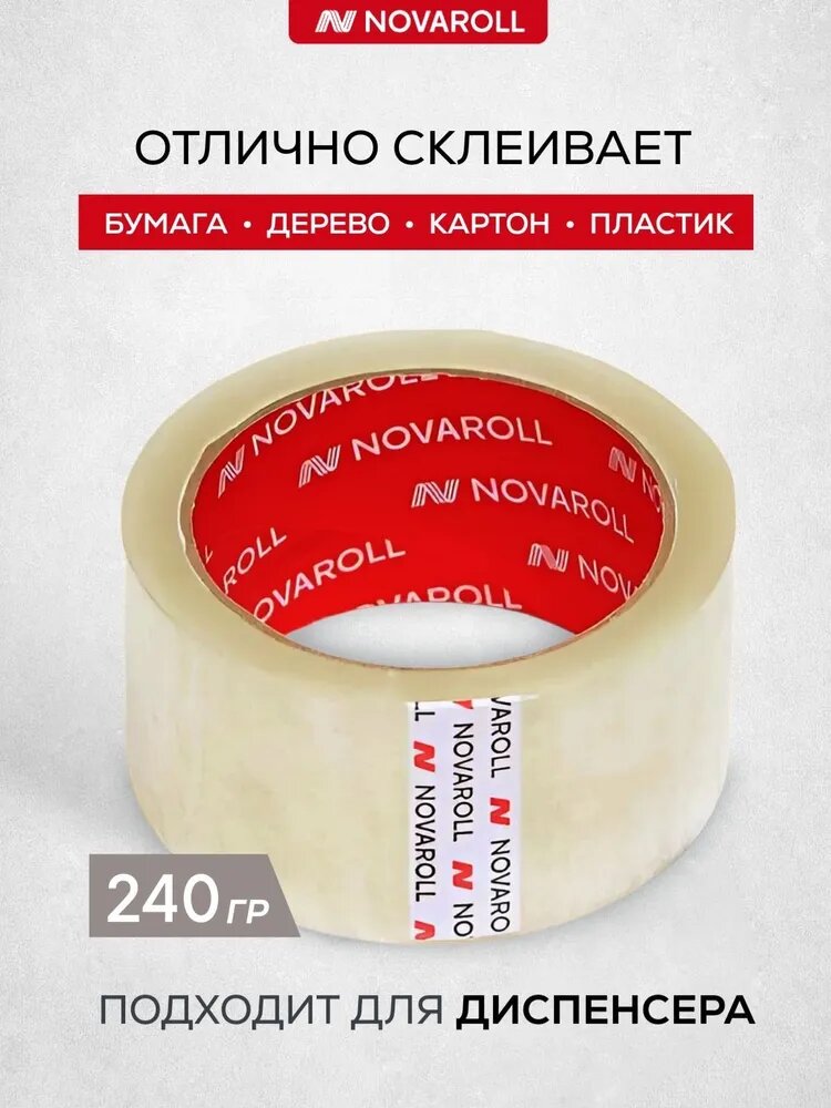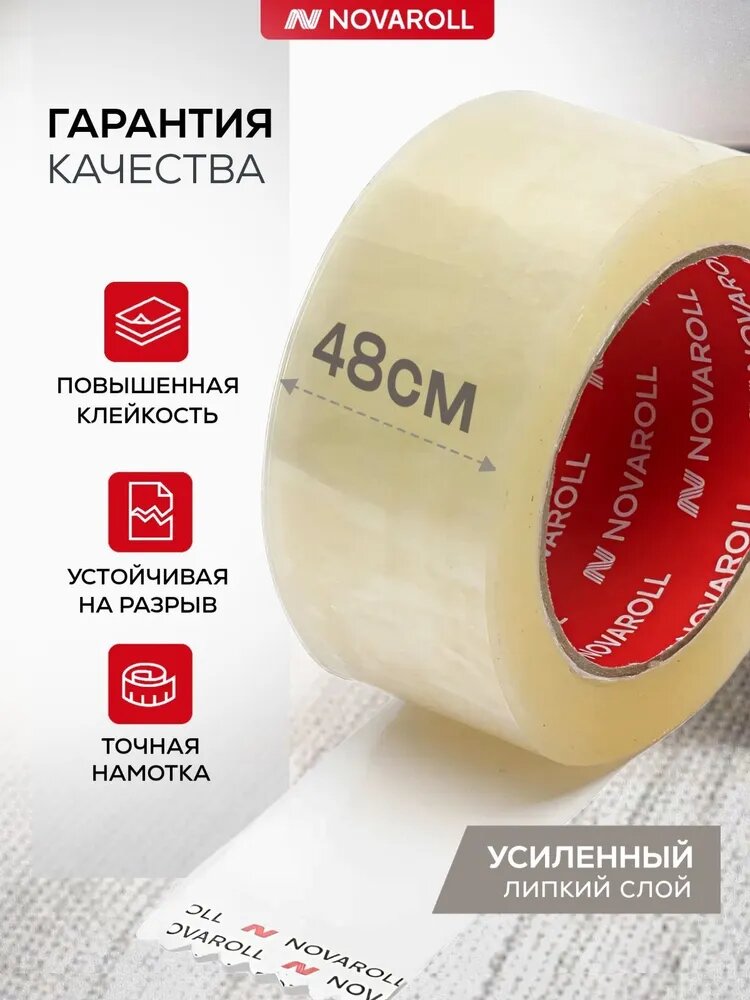 Отзывы на 2шт! Скотч прозрачный Novaroll 48 мм х 120 м х 43 мкм, клейкая лента канцелярская односторонняя.