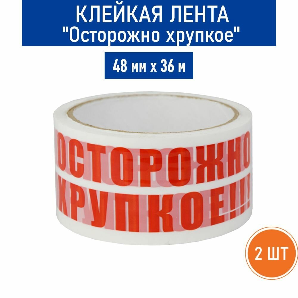 Клейкая лента Unibob "Осторожно хрупкое" , RussCarton 48 мм х 36 м, 2 штуки в упаковке. информация: