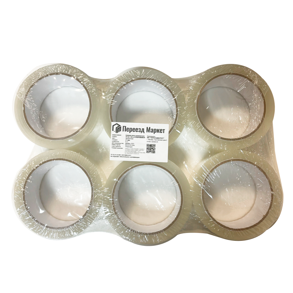 Клейкая лента прозрачная "Переезд Маркет" 48мм*200м*43мкм, 6 шт в наборе 1 890 ₽
