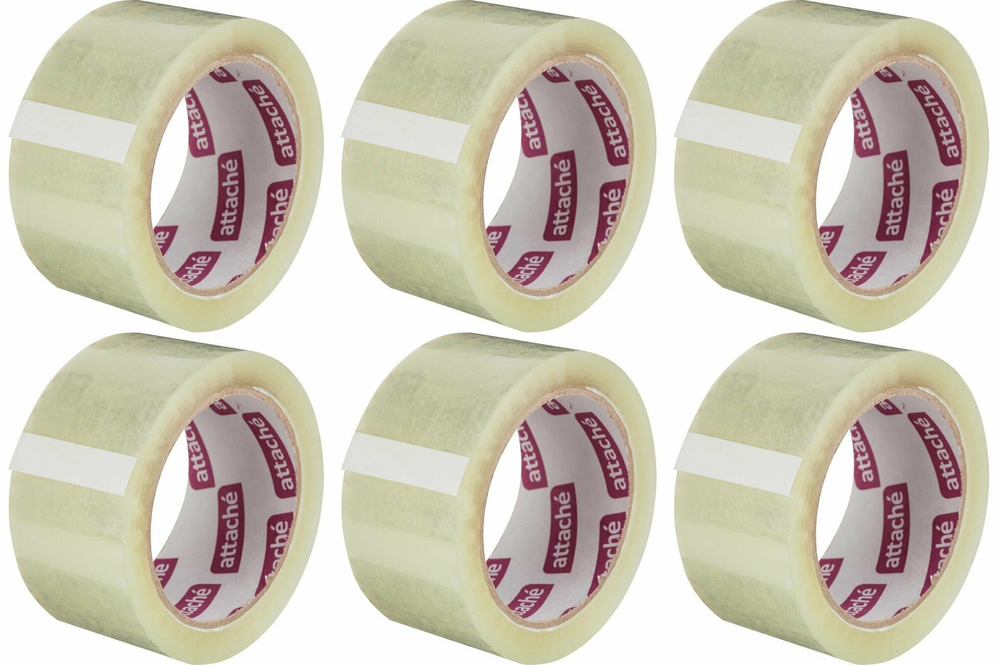 Клейкая лента упаковочная Attache, 50 мм х 66 м, 50 мкм, прозрачная, морозостойкая, 6 шт в упаковке