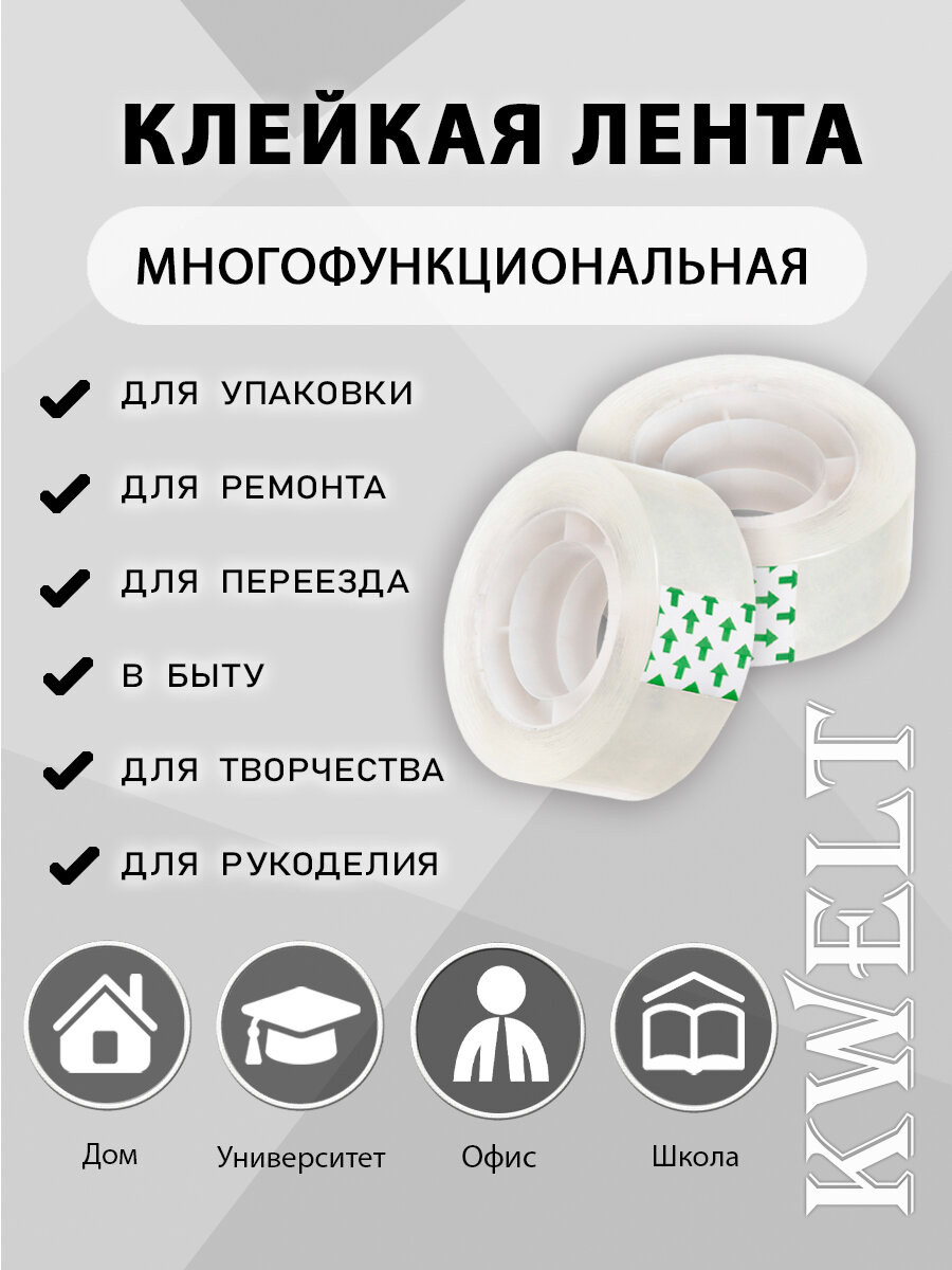 Отзывы на Скотч Kwelt, прозрачный, односторонний, ширина ленты 15мм, 10шт