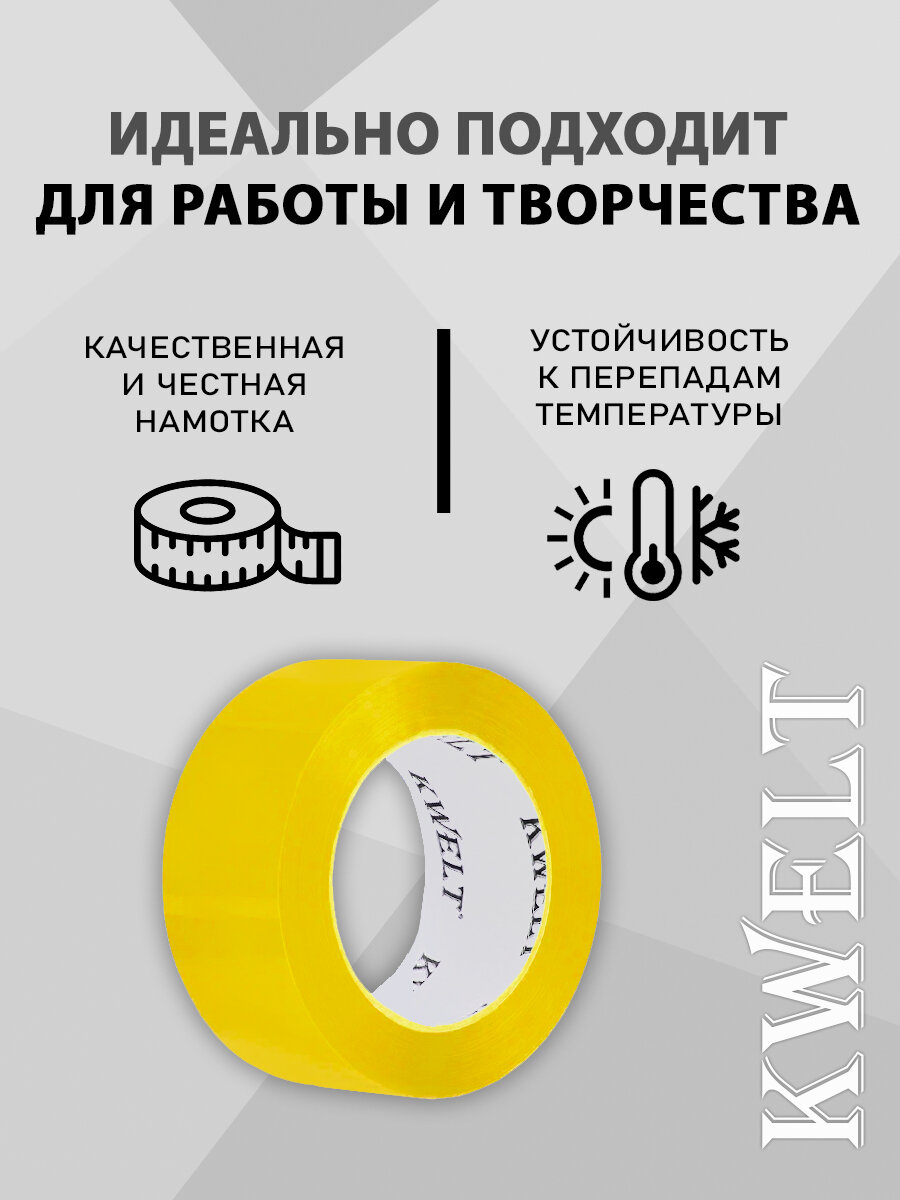 Скотч канцелярский Kwelt, 48 х 66мм, 45 микрон, односторонний, желтый информация: