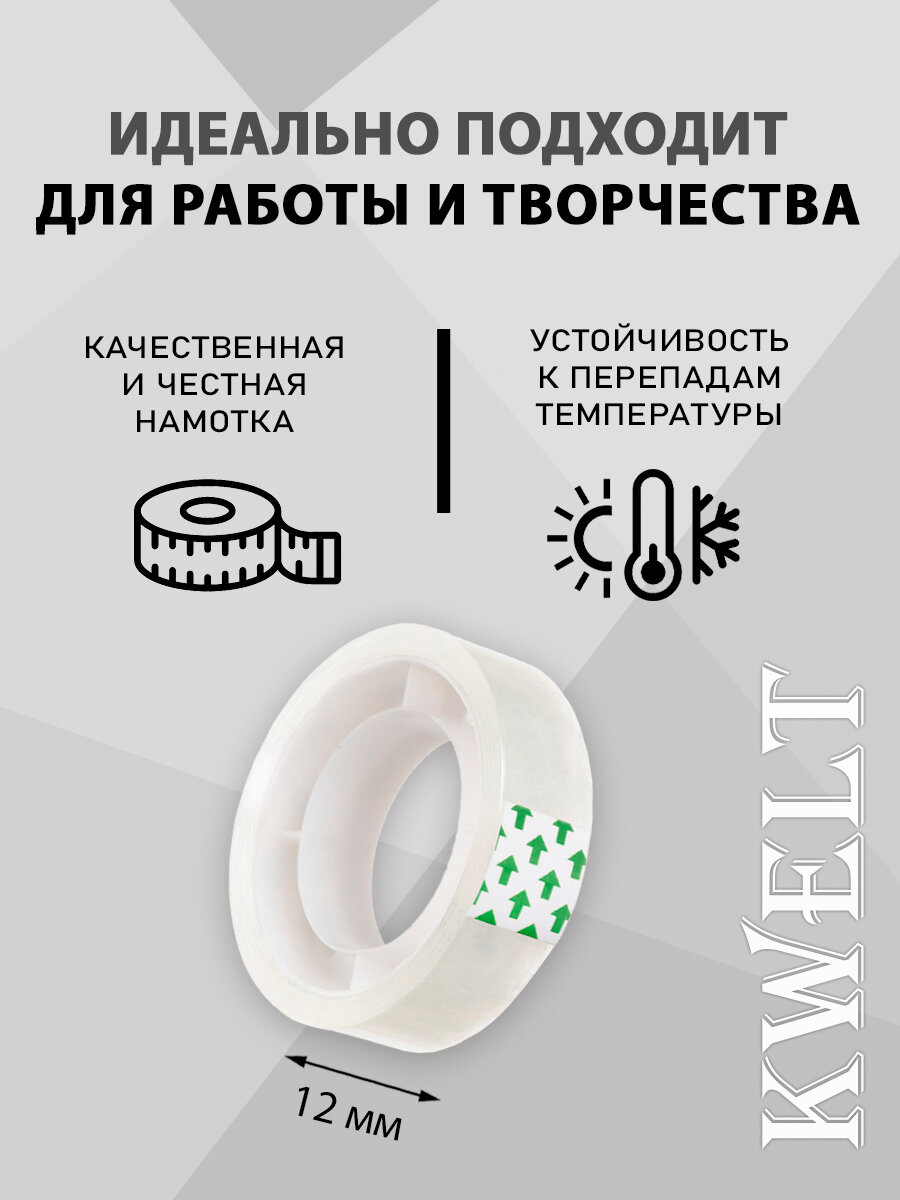 10 цен на Скотч Kwelt, прозрачный, односторонний, ширина ленты 12мм, 40мкм, в упак. 12шт