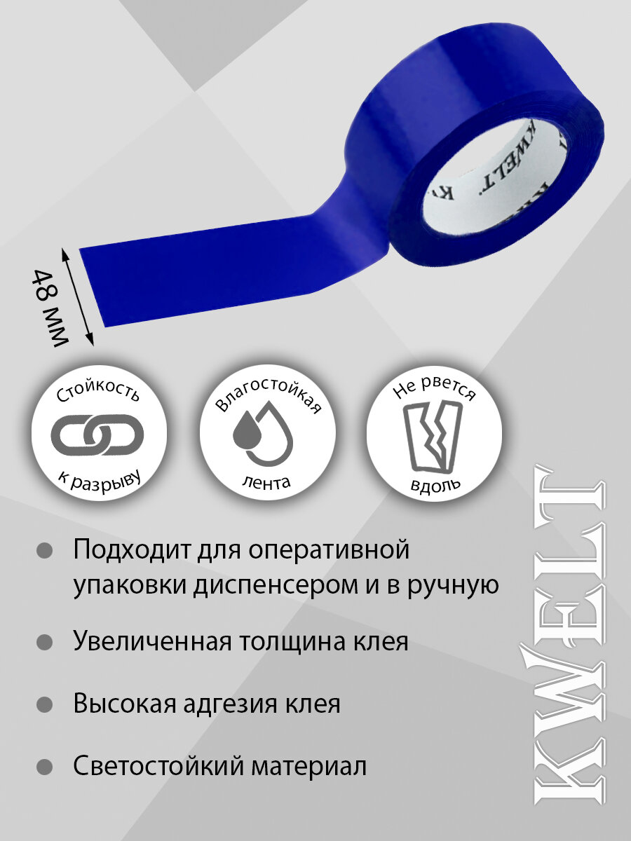 Скотч канцелярский "Kwelt", односторонний, 48x66 мм, синий, 1 шт информация: