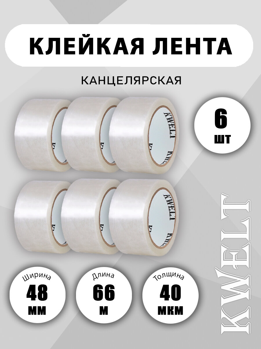 10 цен на Канцелярский скотч KWELT 48х66 мм, односторонний, прозрачный, 6 рулонов в упаковке
