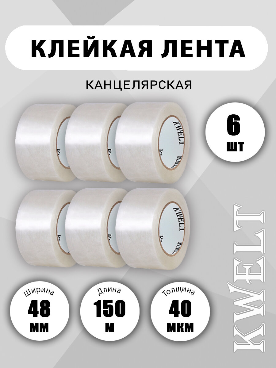 Канцелярский скотч KWELT 48х66 мм, односторонний, прозрачный, 6 рулонов в упаковке 646 ₽