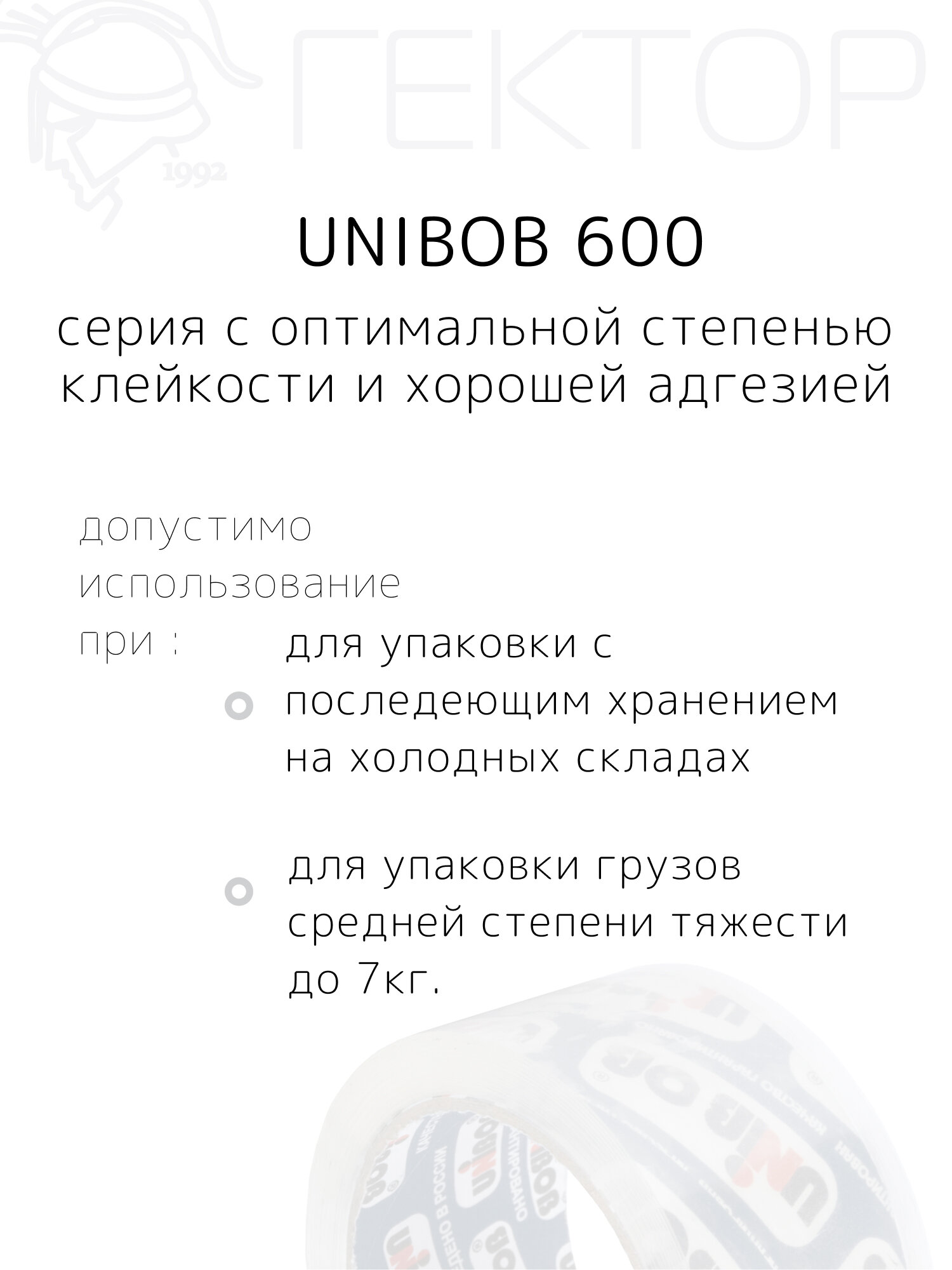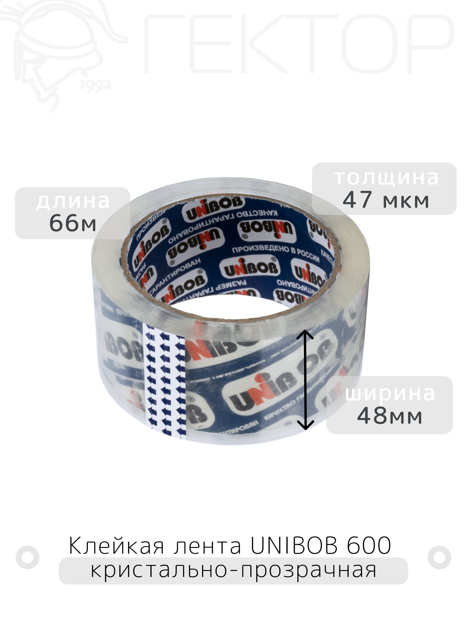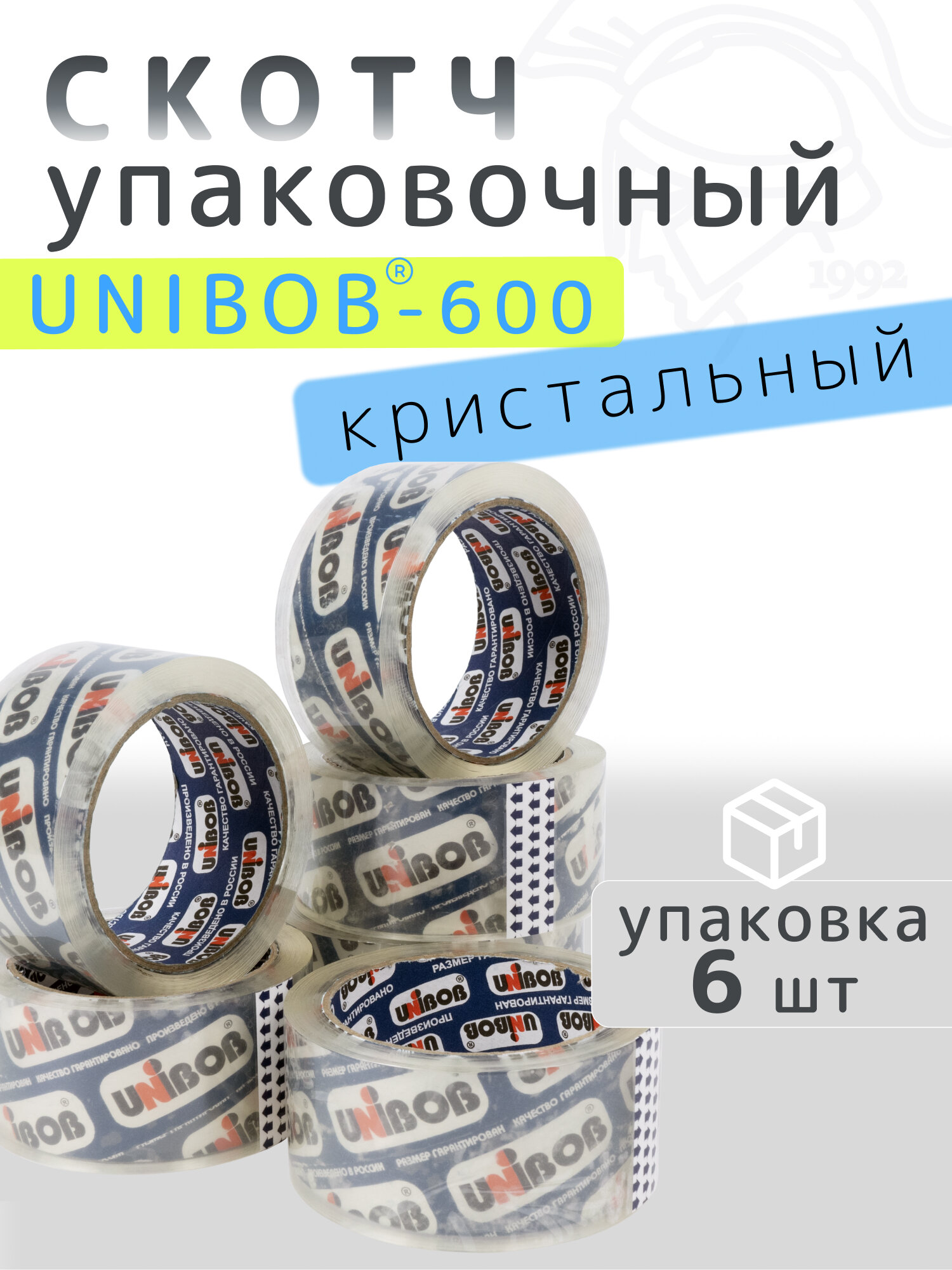 Клейкая лента упаковочная (скотч) 48мм*66м, 45 мкм, UNIBOB 600, кристальная, 6 штук информация: