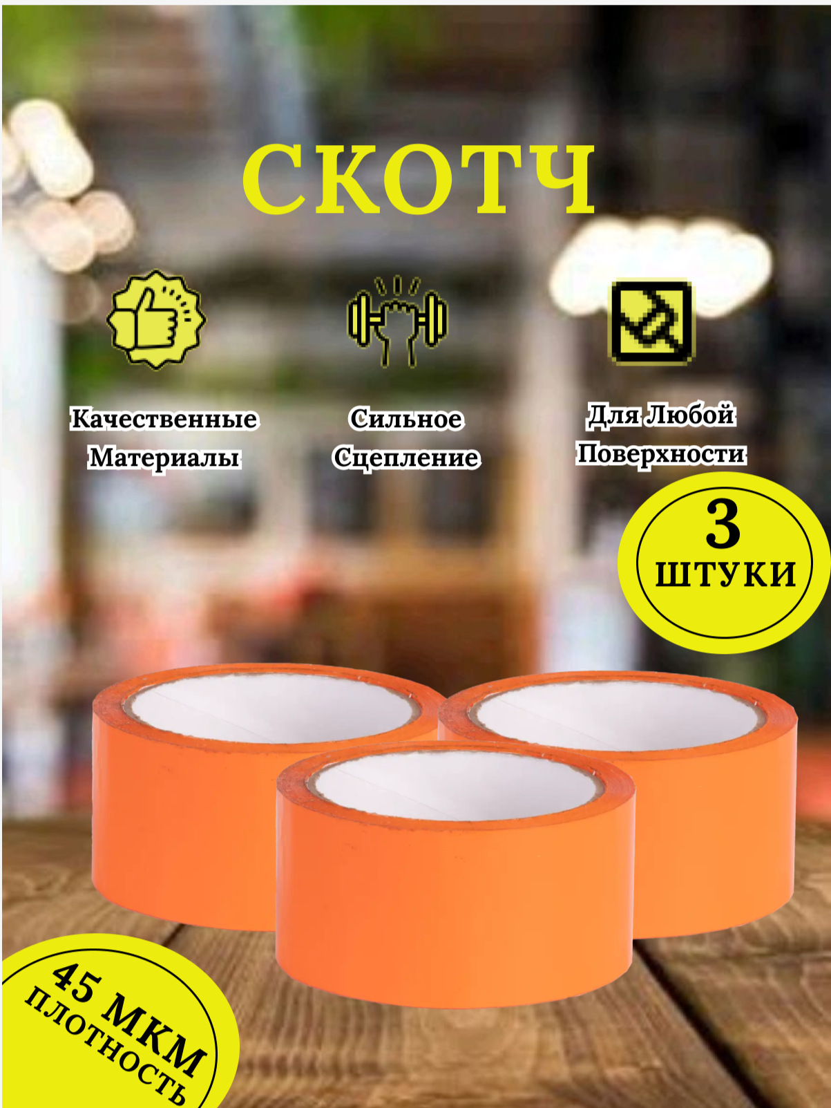 Клейкая лента полипропиленовая 48мм х 50м / 45мкм оранжевая 3 штуки скотч информация:
