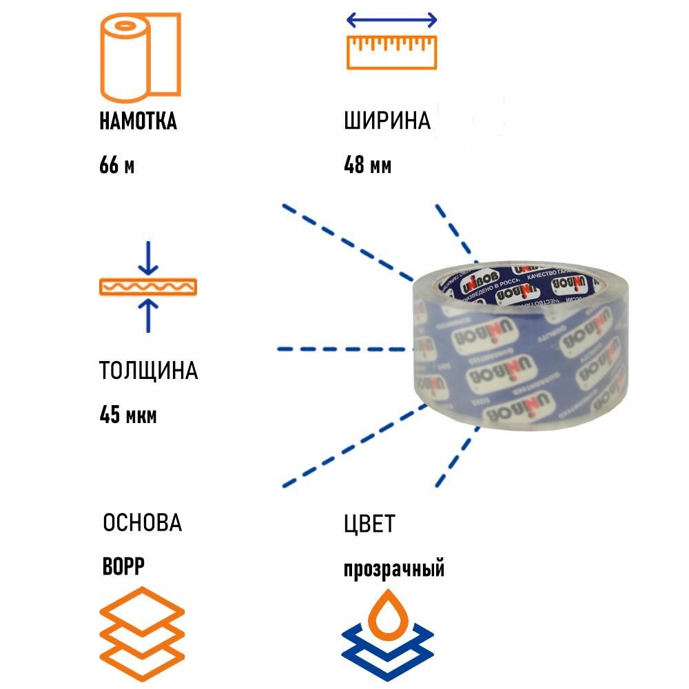Клейкая лента упаковочная Unibob 600 кристально-чистая 48 мм х 66 м, толщина 45 мкм. 1 шт информация: