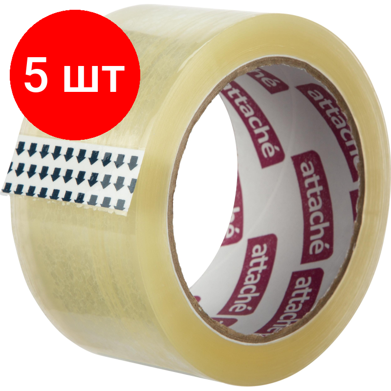 10 цен на Комплект 5 штук, Клейкая лента упаковочная ATTACHE 50мм х 66м 50мкм прозрачная