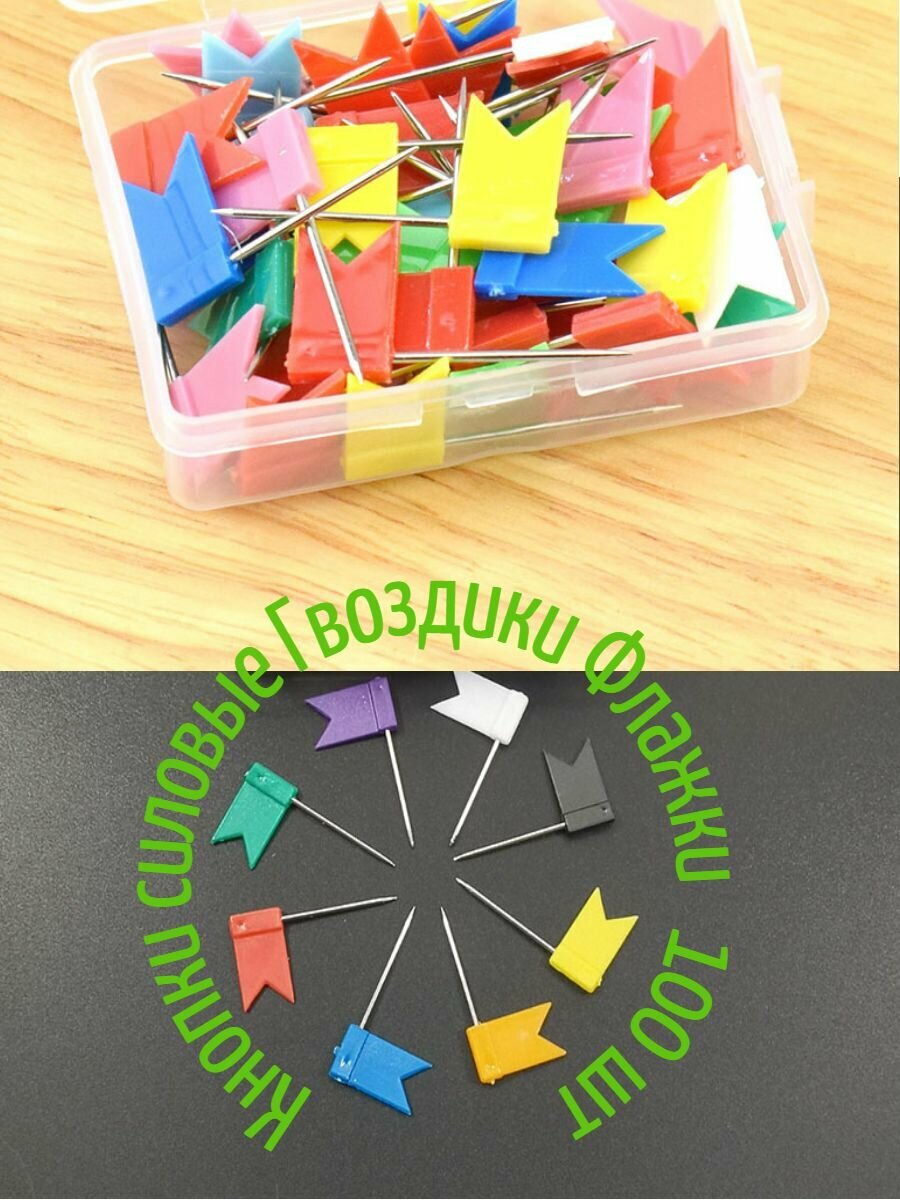 10 цен на Кнопки силовые Флажки, гвозди-булавки в пластиковом кейсе 100 шт.