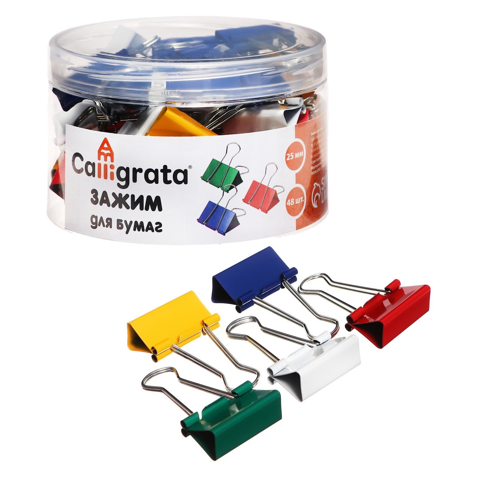 10 цен на Набор зажимов для бумаг цветных 25мм, 48 штук, 4 цвета, в пластиковой тубе