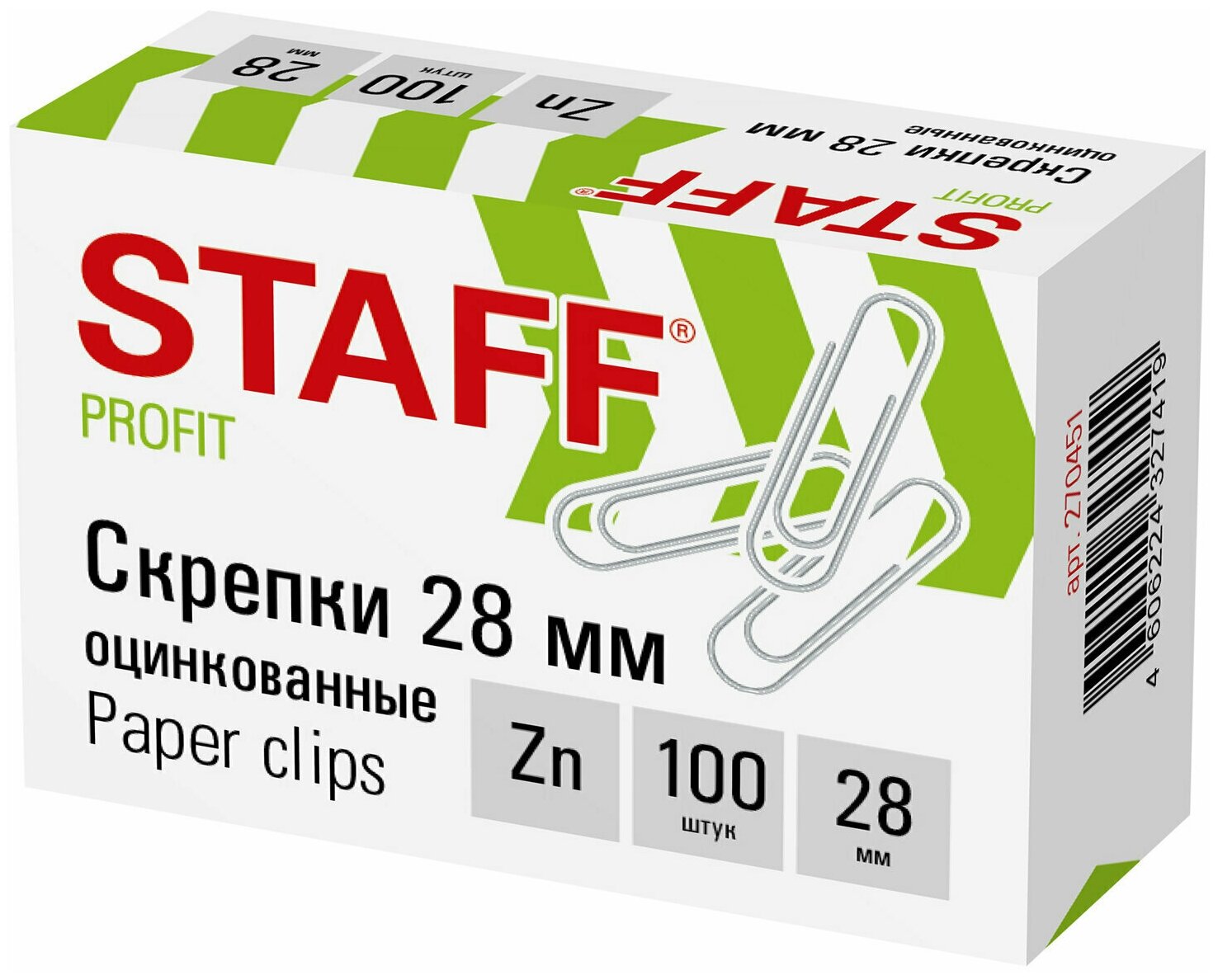 10шт Скрепки STAFF, 28 мм, оцинкованные, 100 шт, в картонно