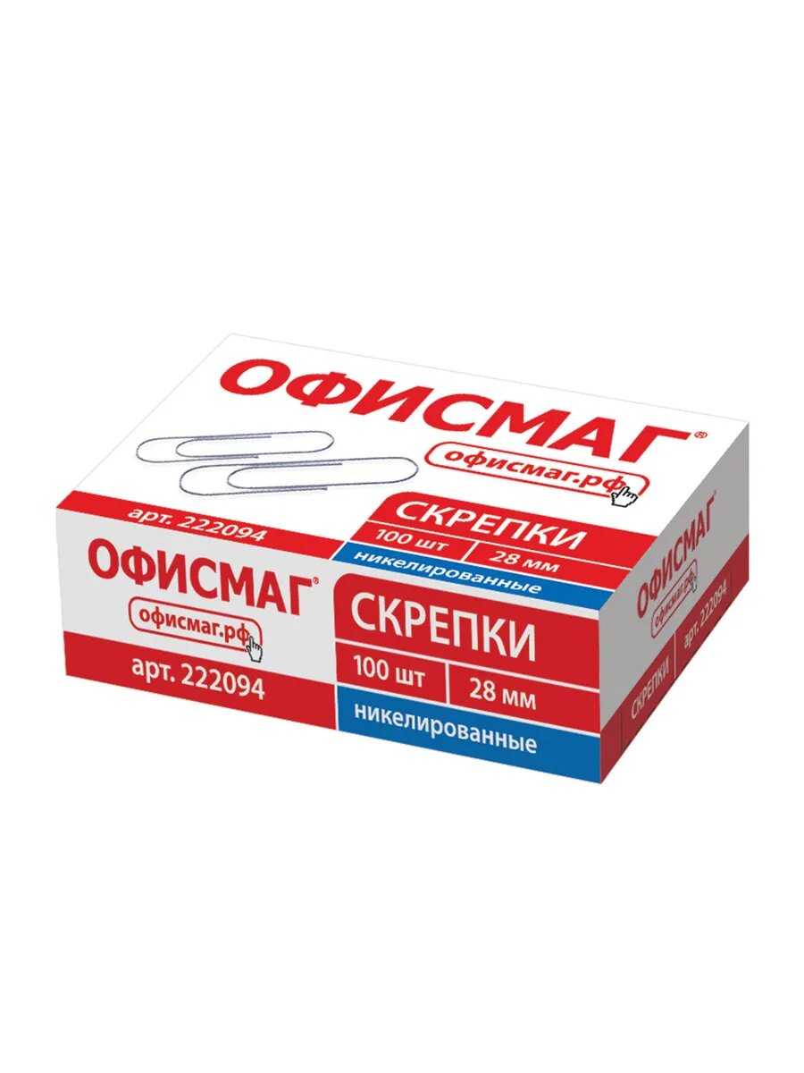 10 цен на 10шт Скрепки офисмаг, 28 мм, никелированные, 100 шт, в карт
