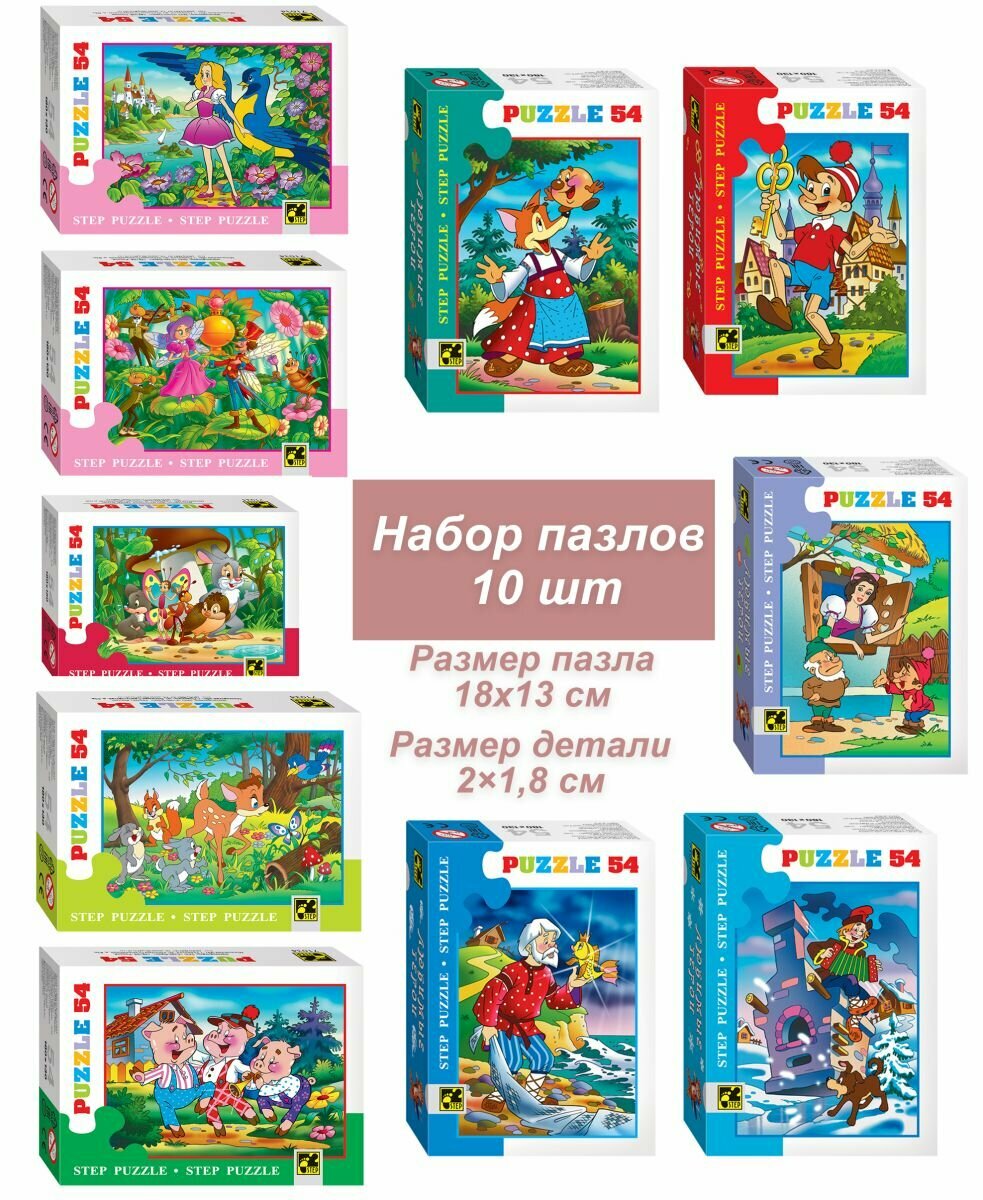 Набор пазлов для детей 10 шт по 54 детали: Любимые герои информация: