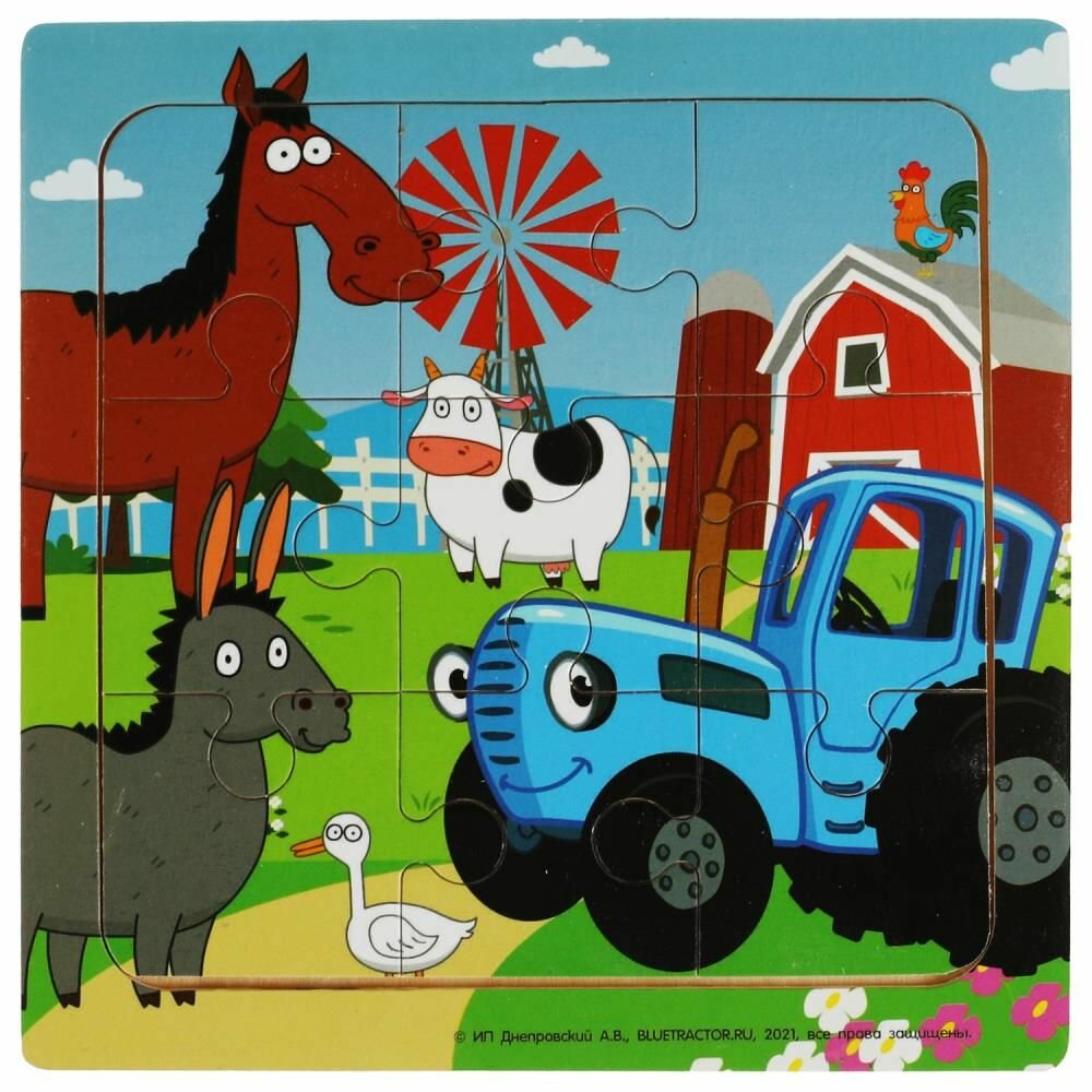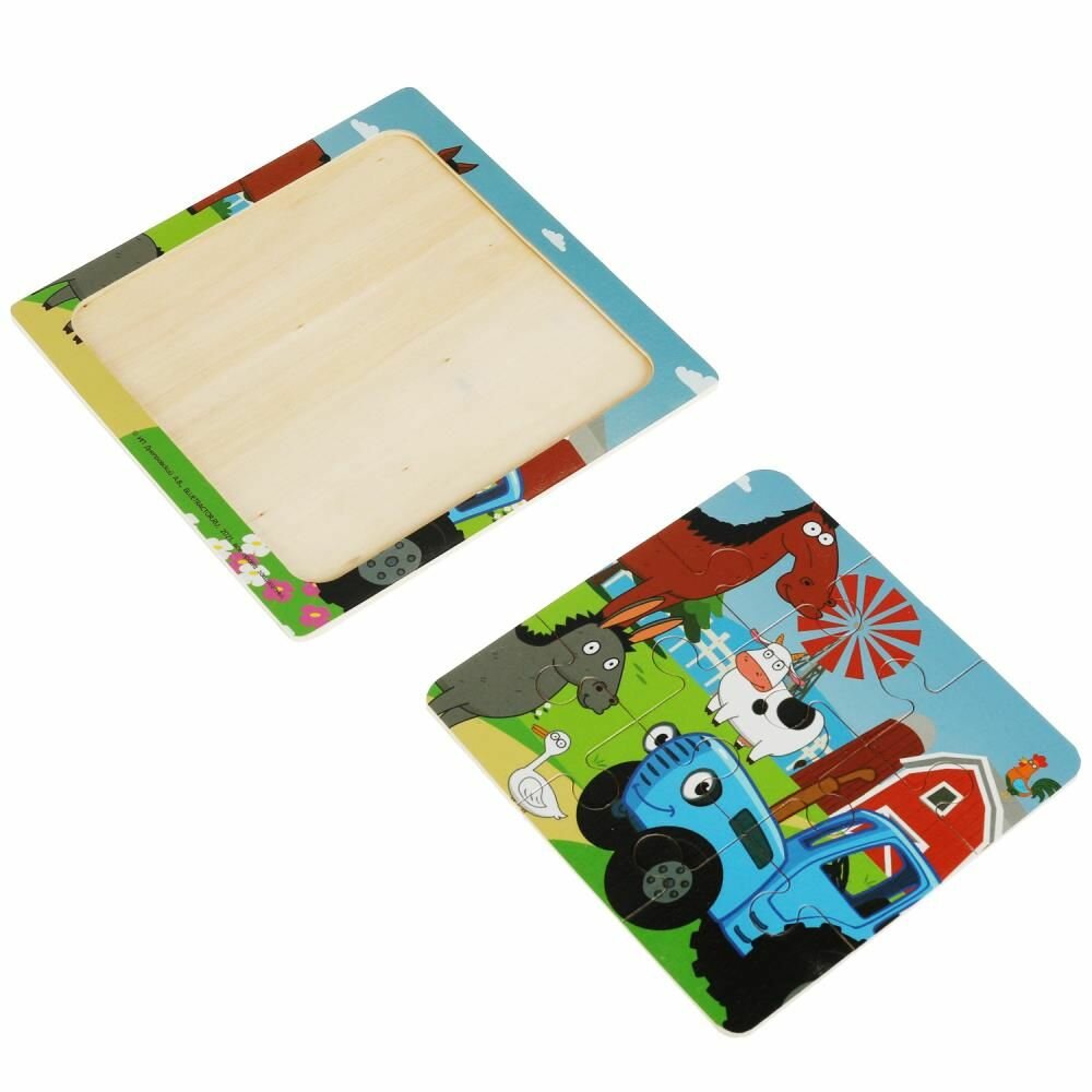 Деревянные развивающие пазлы рамка вкладыш для малышей Синий трактор Буратино информация: