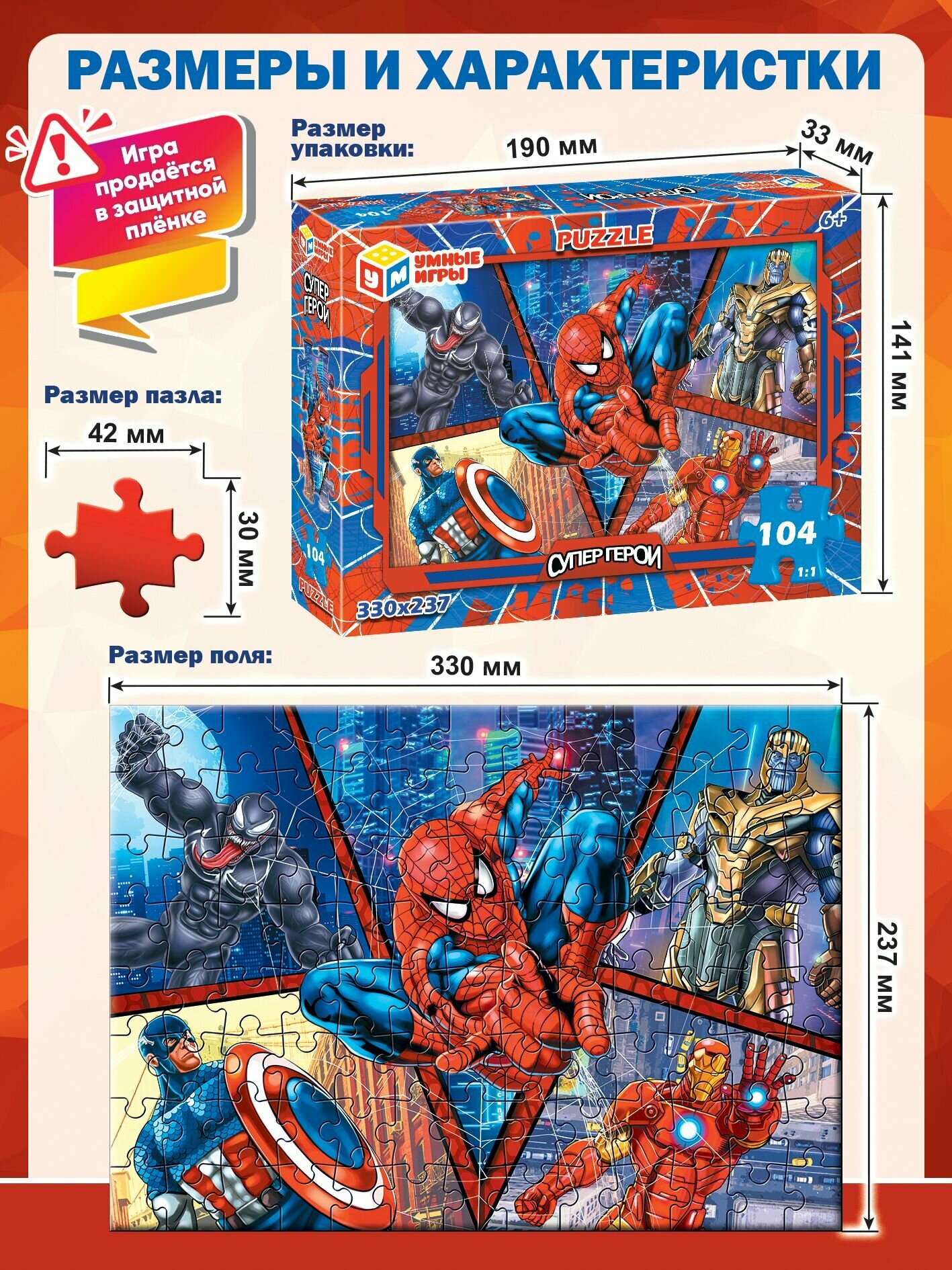 Пазлы для детей Супергерои 104 детали Умные игры информация: