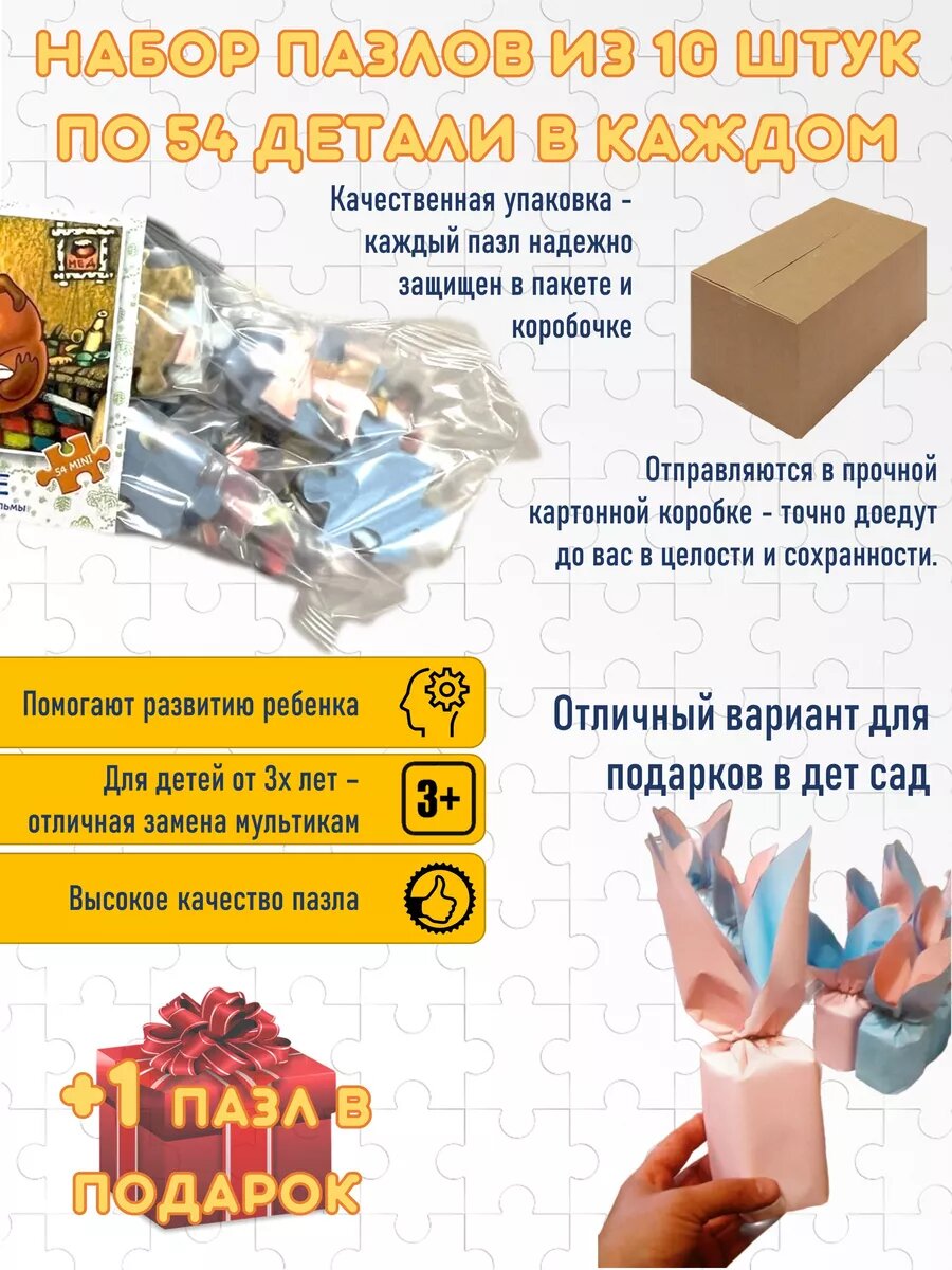 10 цен на 10+1 в подарок набор пазлов для детей "Любимые мультфильмы"