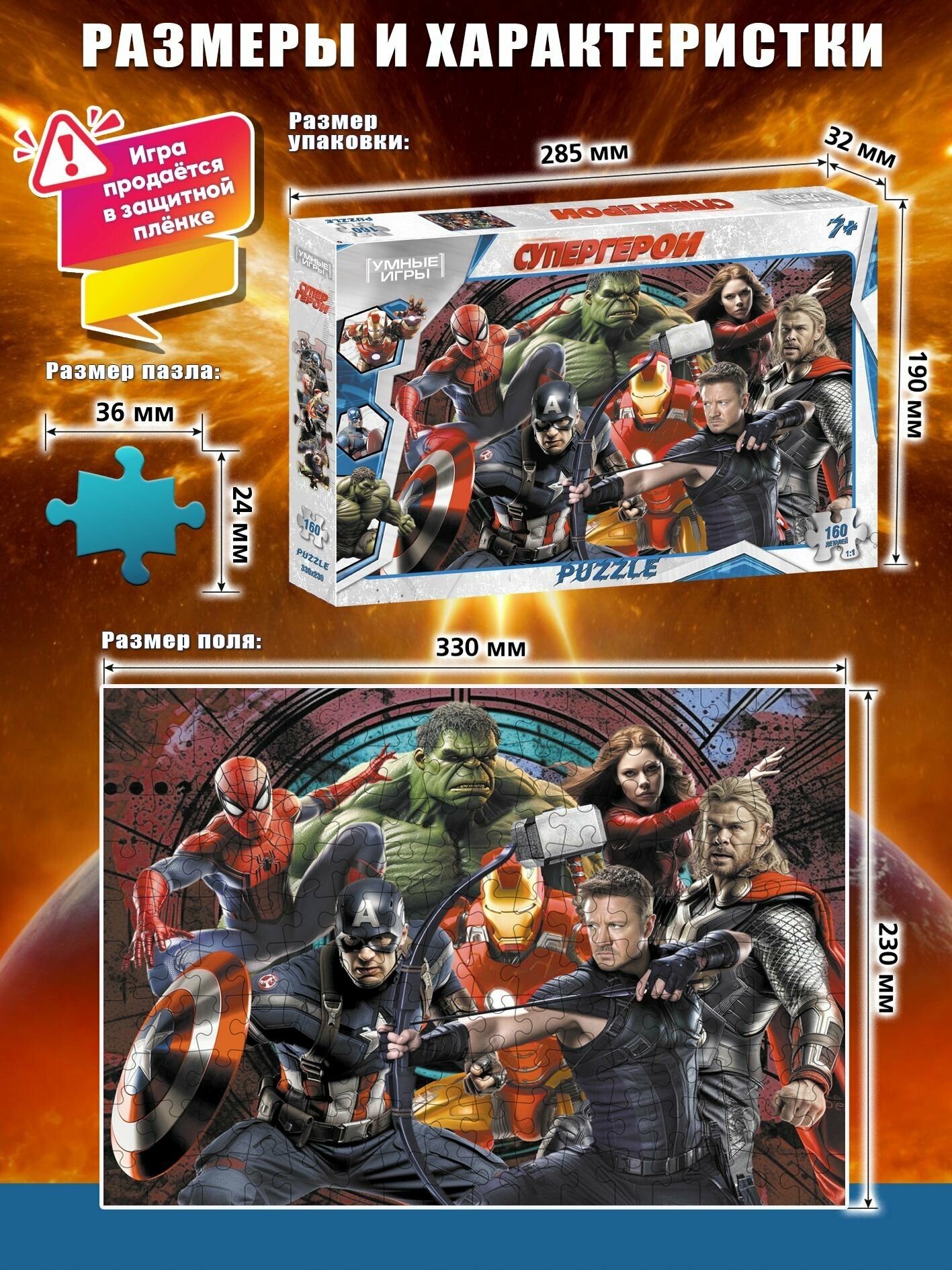 Пазлы классические Супергерои 160 деталей Умные игры для детей от 7-ми лет информация:
