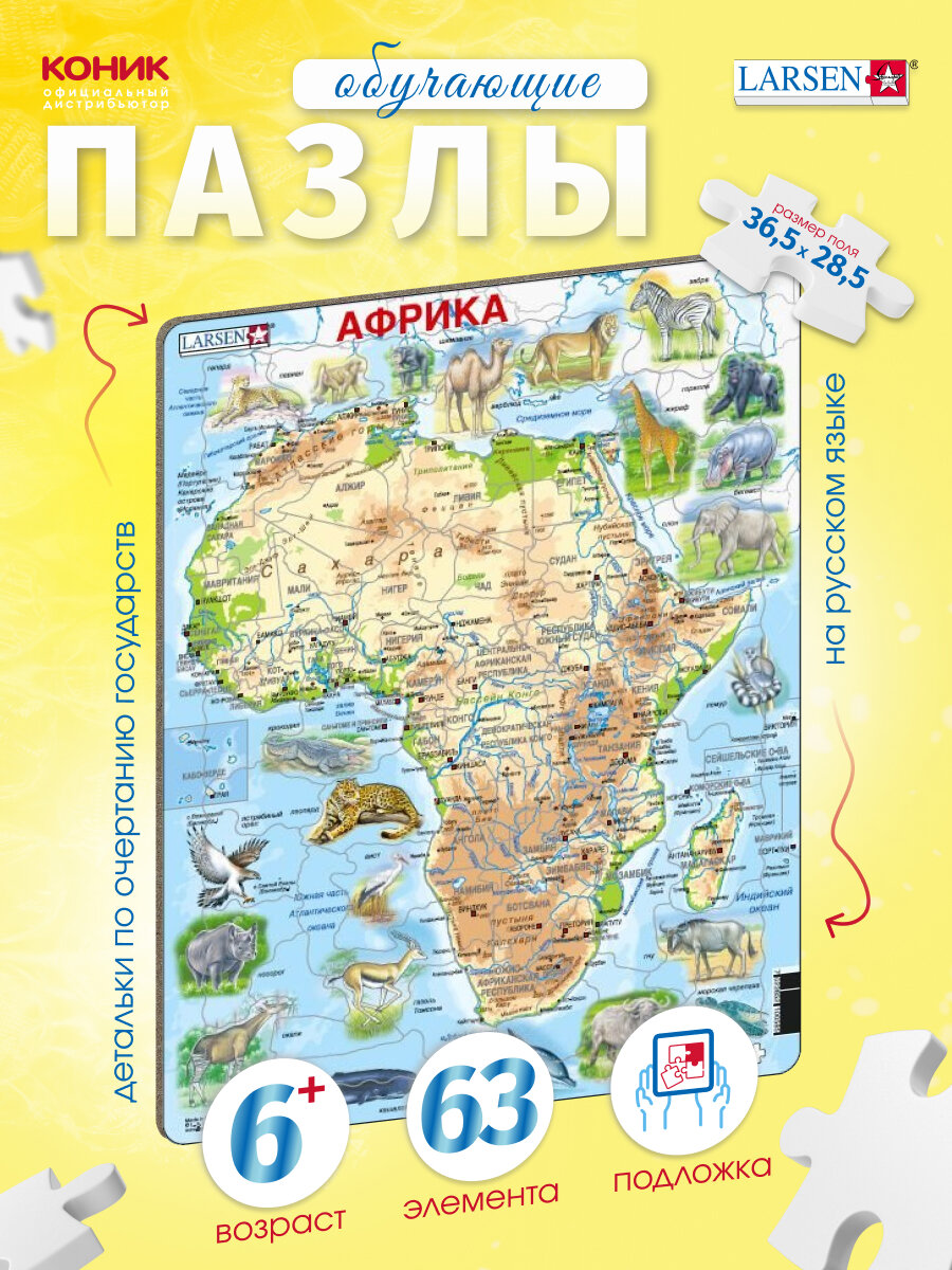 Детские пазлы карты Larsen "Животные Африки", 63 детали, A22 информация: