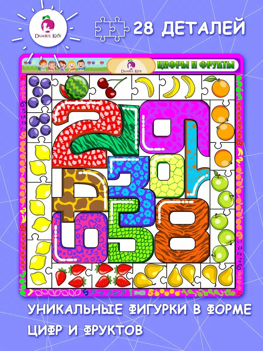 Пазл деревянный для детей цифры и фрукты информация: