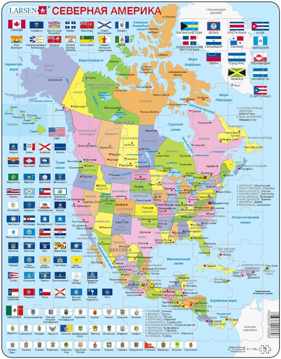 Детские пазлы карты Larsen "Северная Америка" (Русский), 85 деталей, K17 информация: