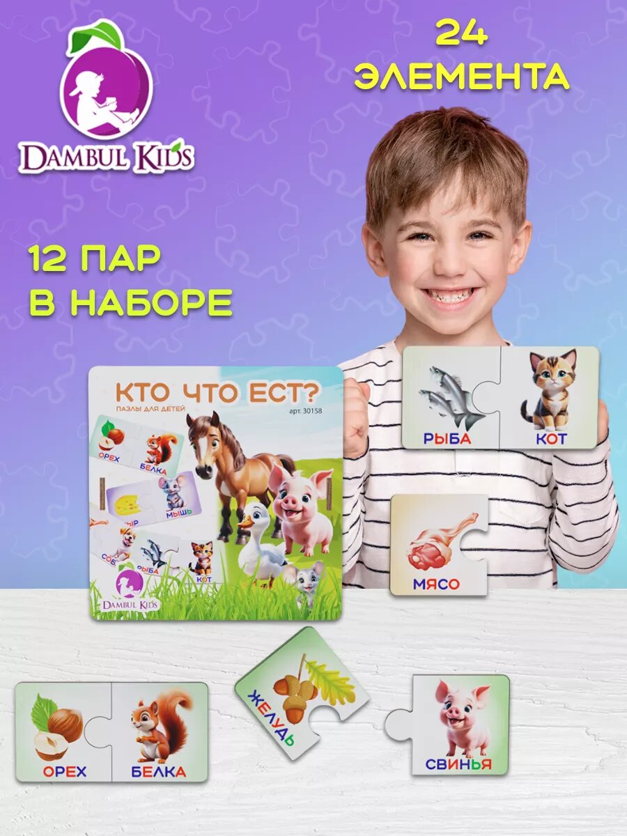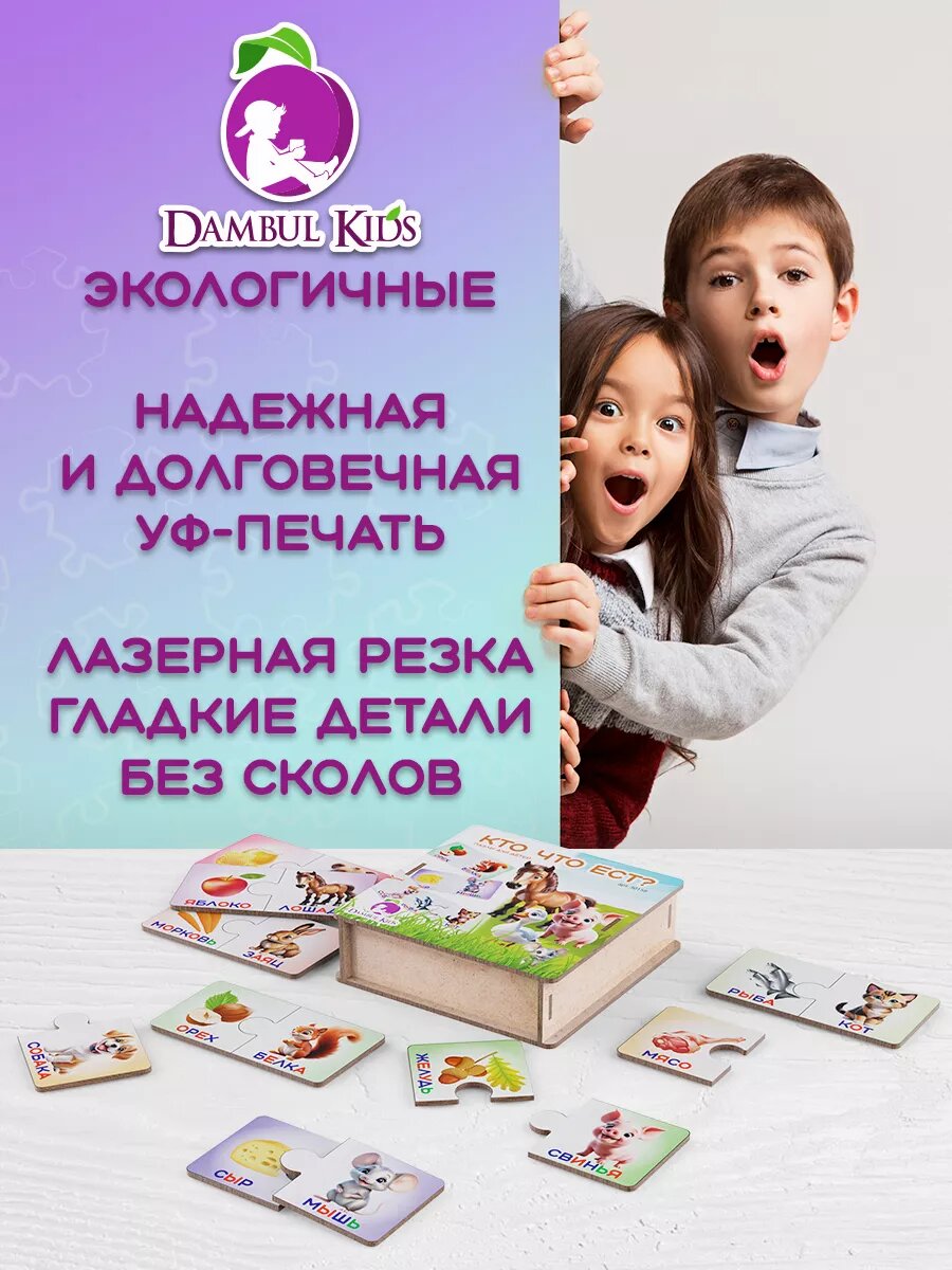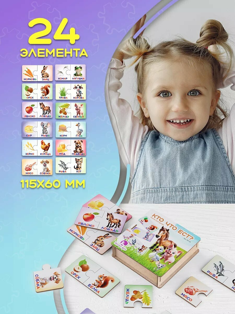 Деревянные пазлы для детей 2 3 4 лет картинки Кто что ест информация: