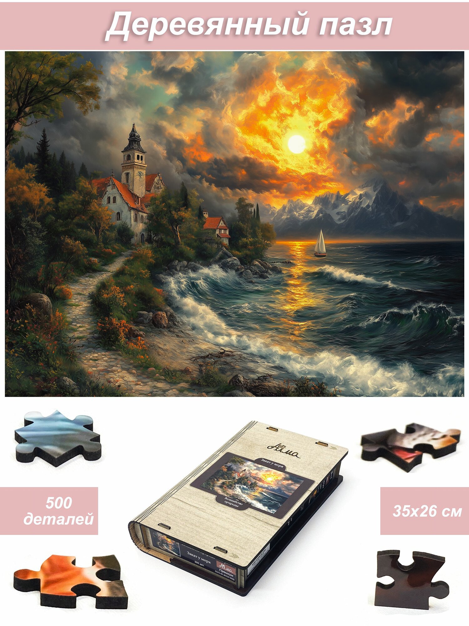 Отзывы на Пазл деревянный для взрослых Алма 500 деталей: Волшебство природы. Закат у моря