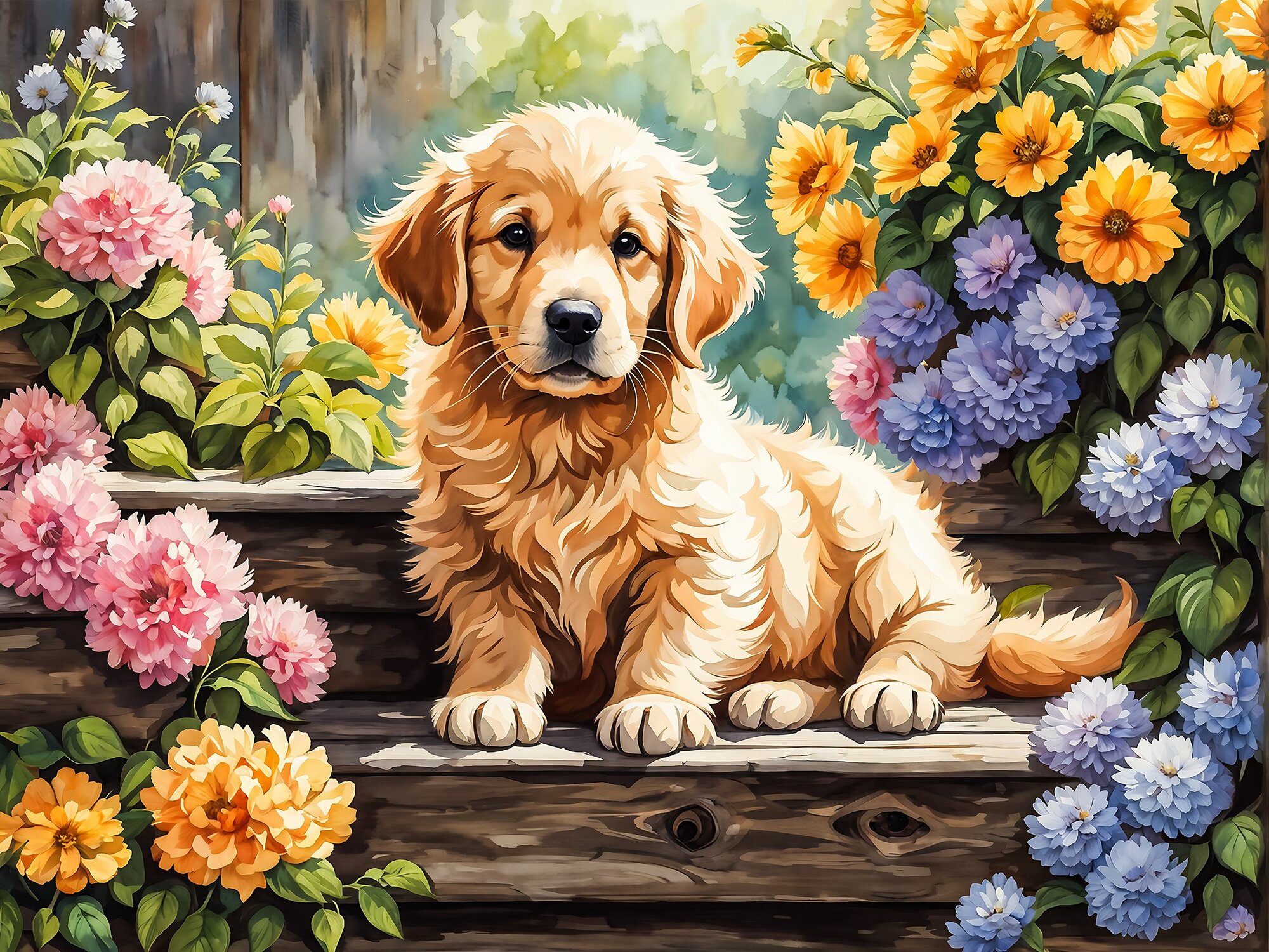 Пазл деревянный для взрослых Алма 500 деталей: Щенок ретривер информация: