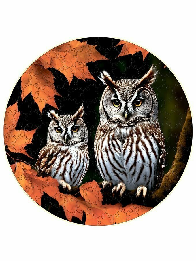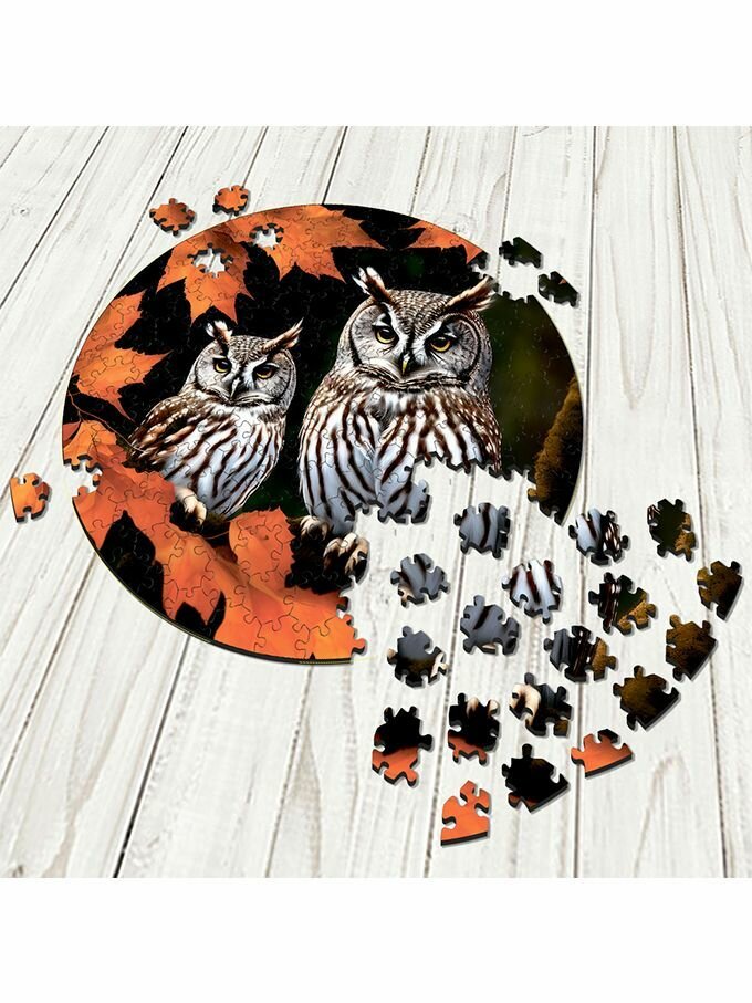10 цен на Деревянный пазл картина на стену Осенние совы 169 деталей 30х30см с системой приклейки
