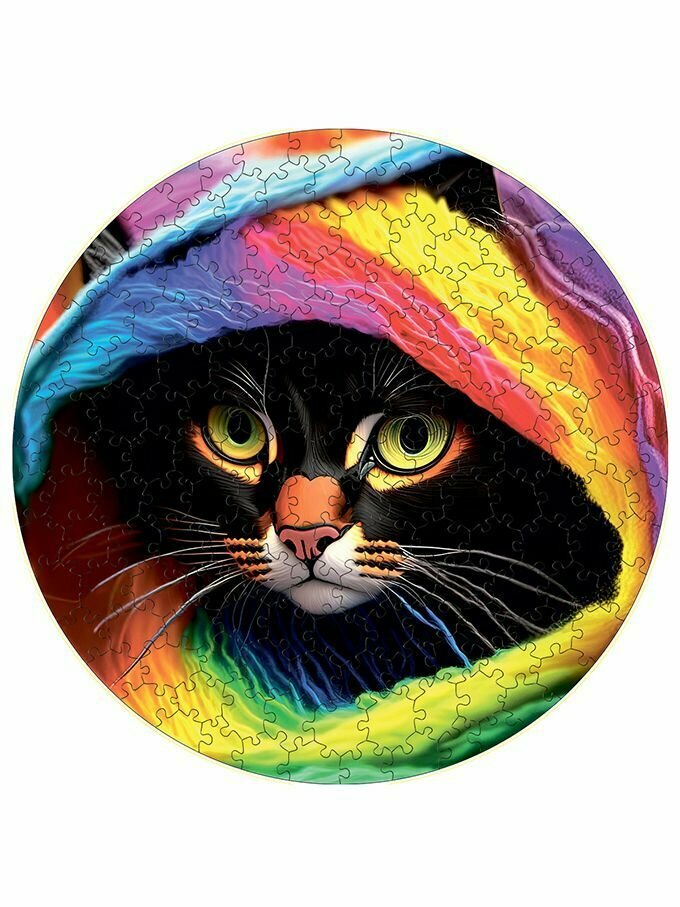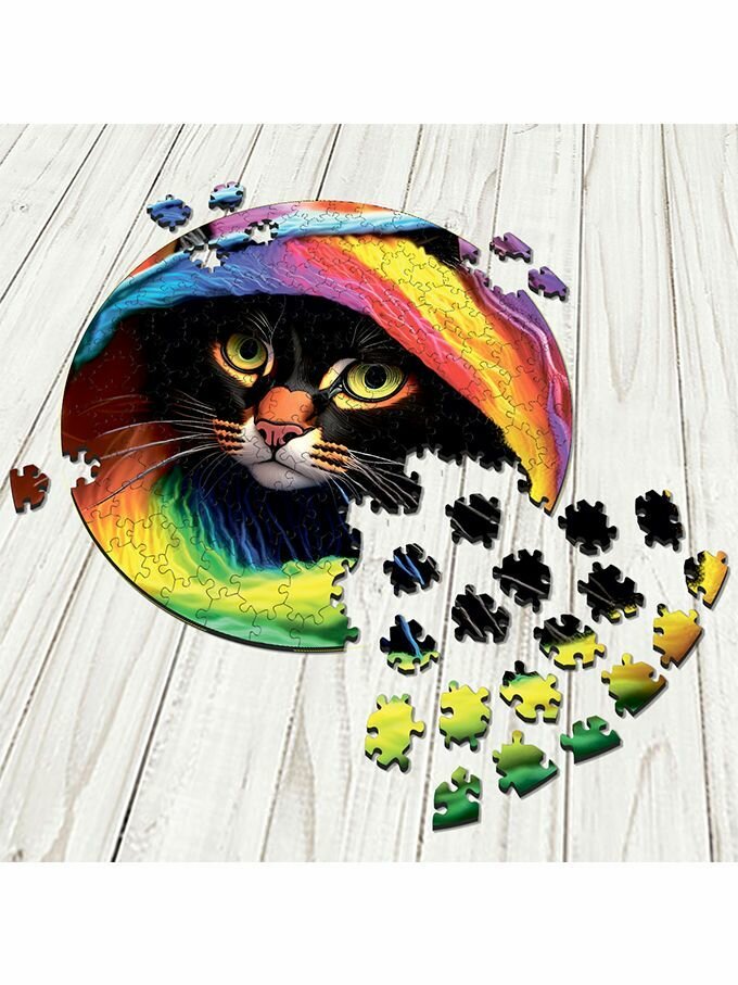 Деревянный пазл картина на стену Кот в радужной дымке 169 деталей 30х30см с системой приклейки информация: