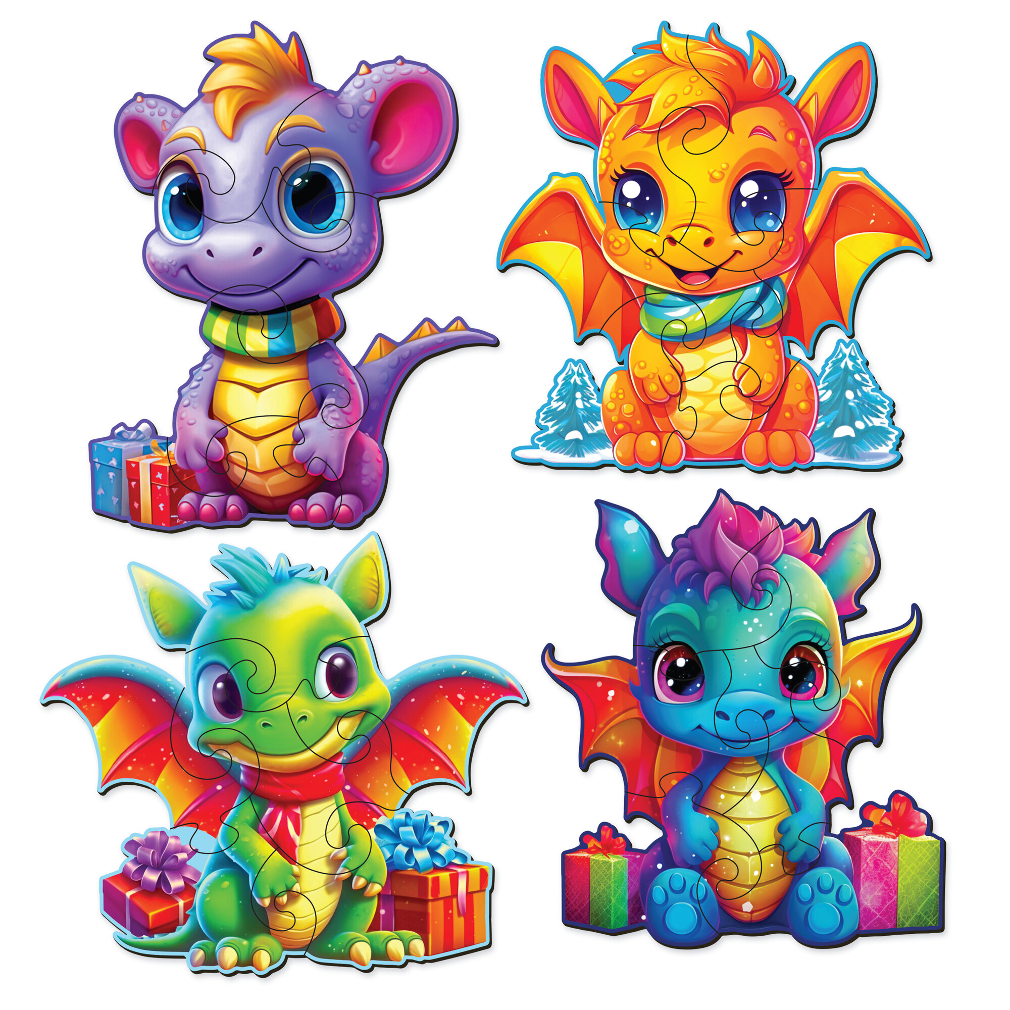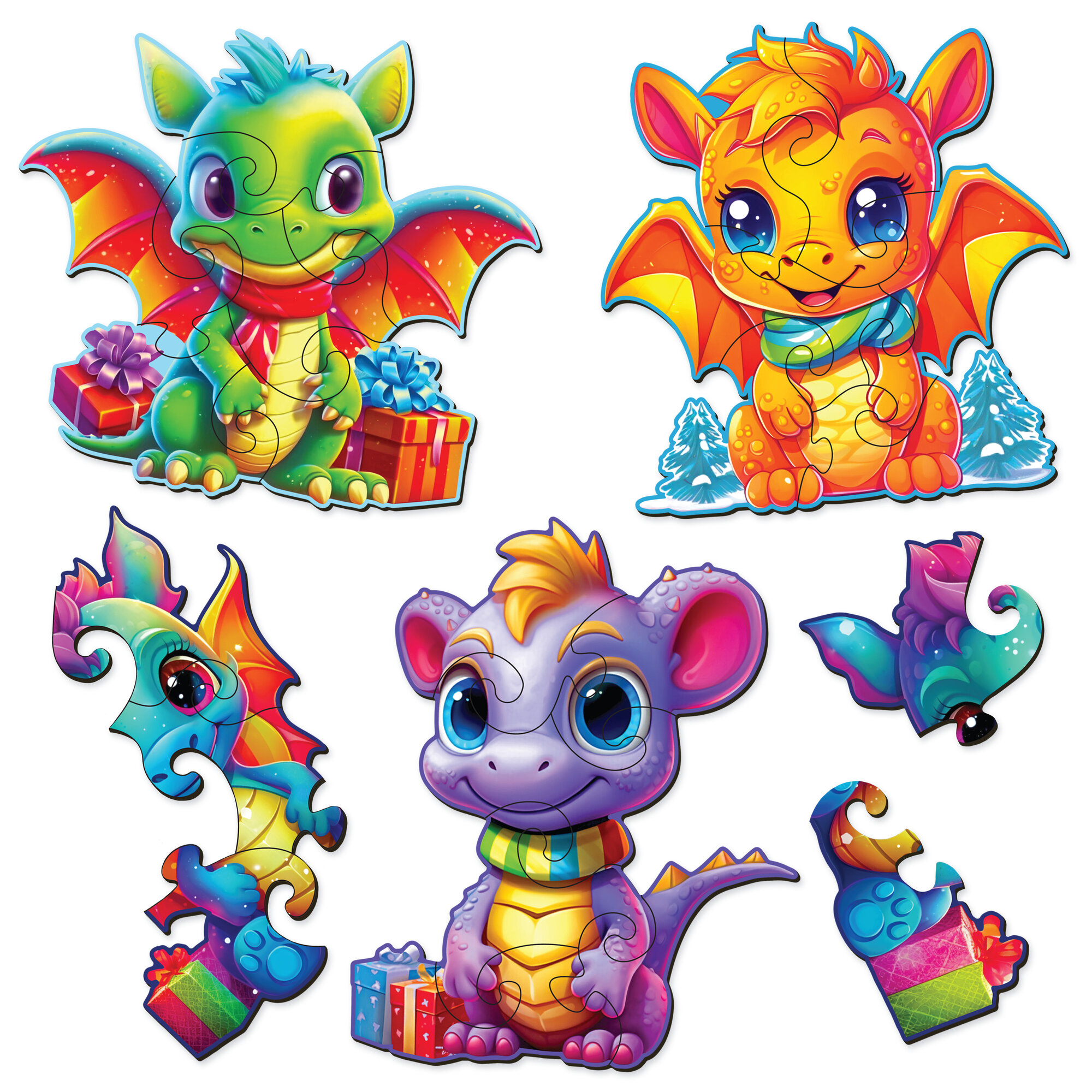 Деревянные пазлы для взрослых и детей/Новогодние дракончики/подарочный набор/игра информация: