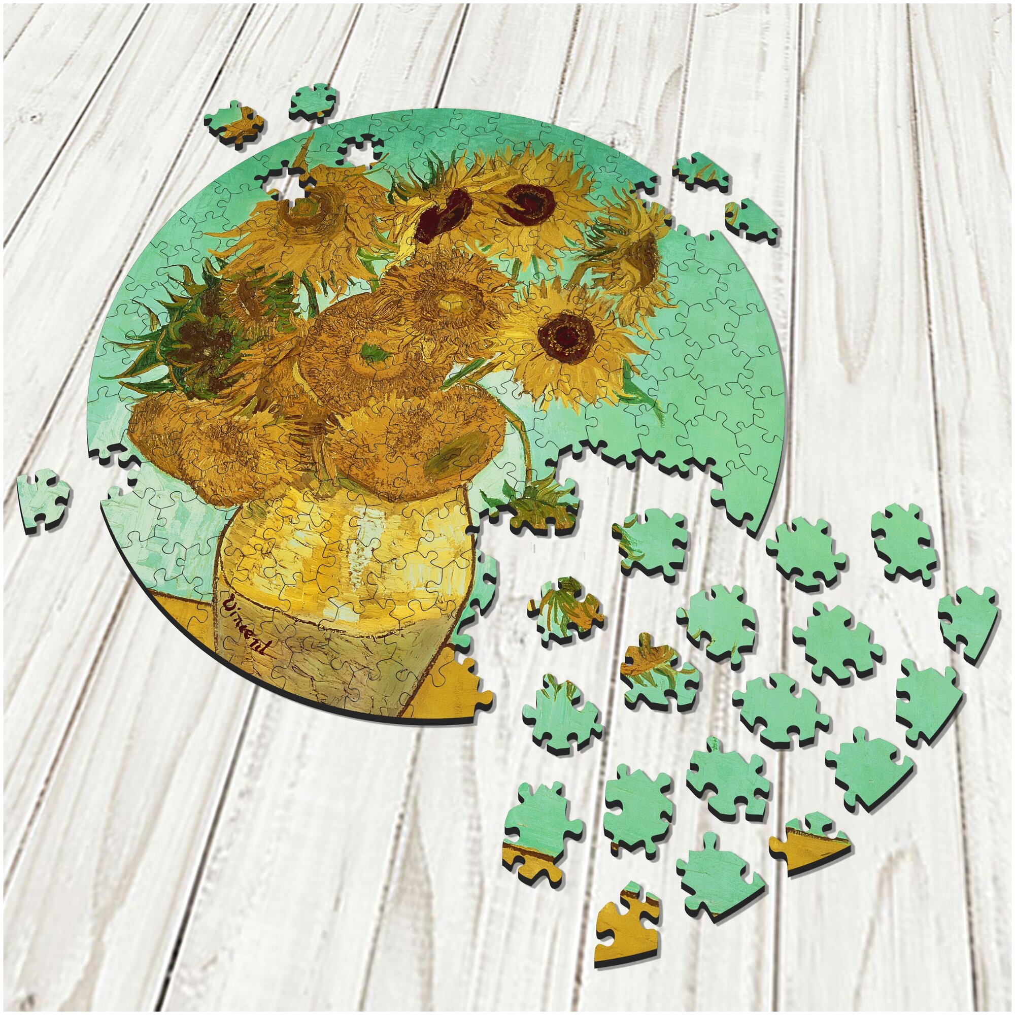 Отзывы на Деревянный пазл- картина на стену подсолнухи Винсент Ван Гог 169 деталей 30х30 см для детей и взрослых
