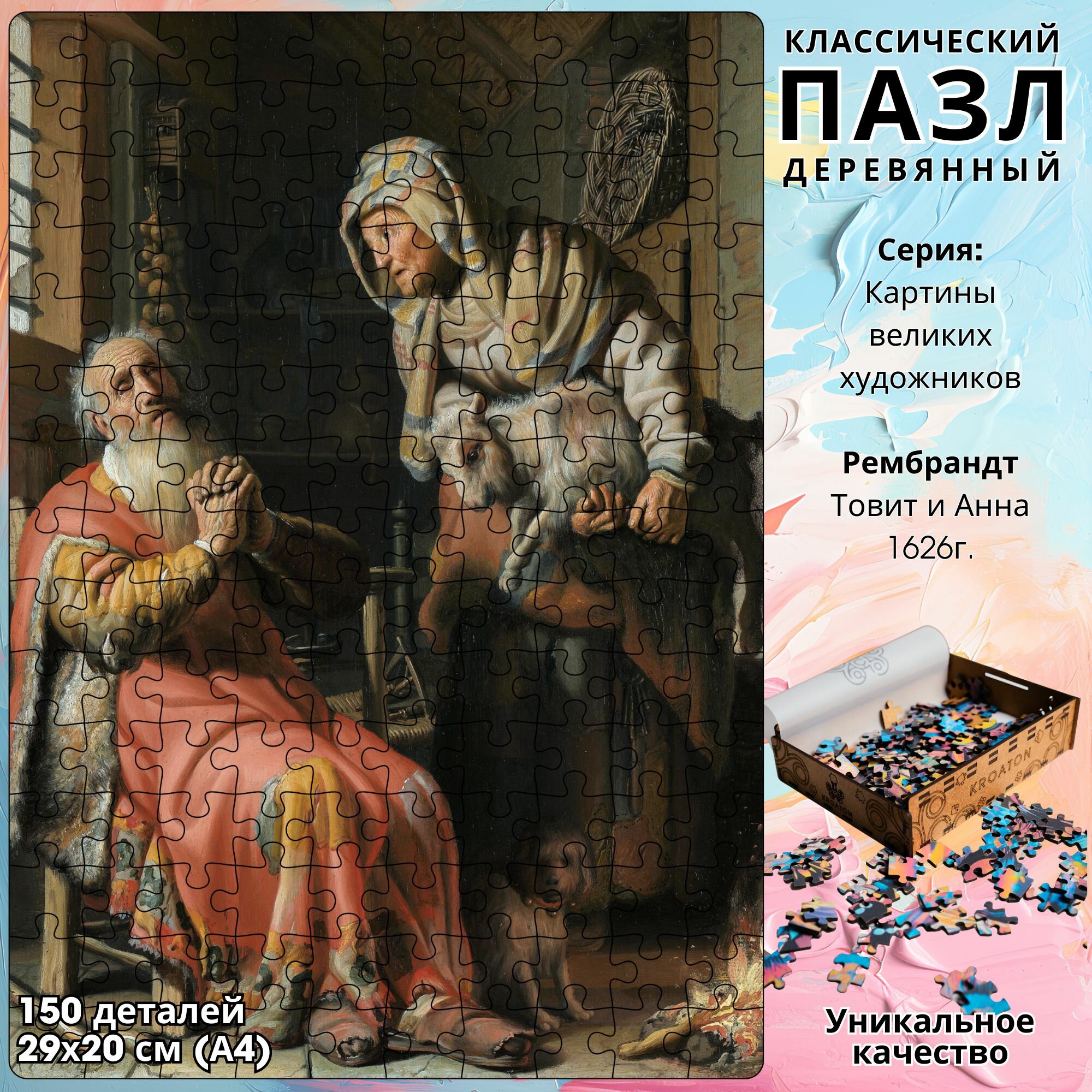 Деревянный классический пазл Kroaton Рембрандт Товит и Анна с ягнёнком 150 деталей 29*20 см информация: