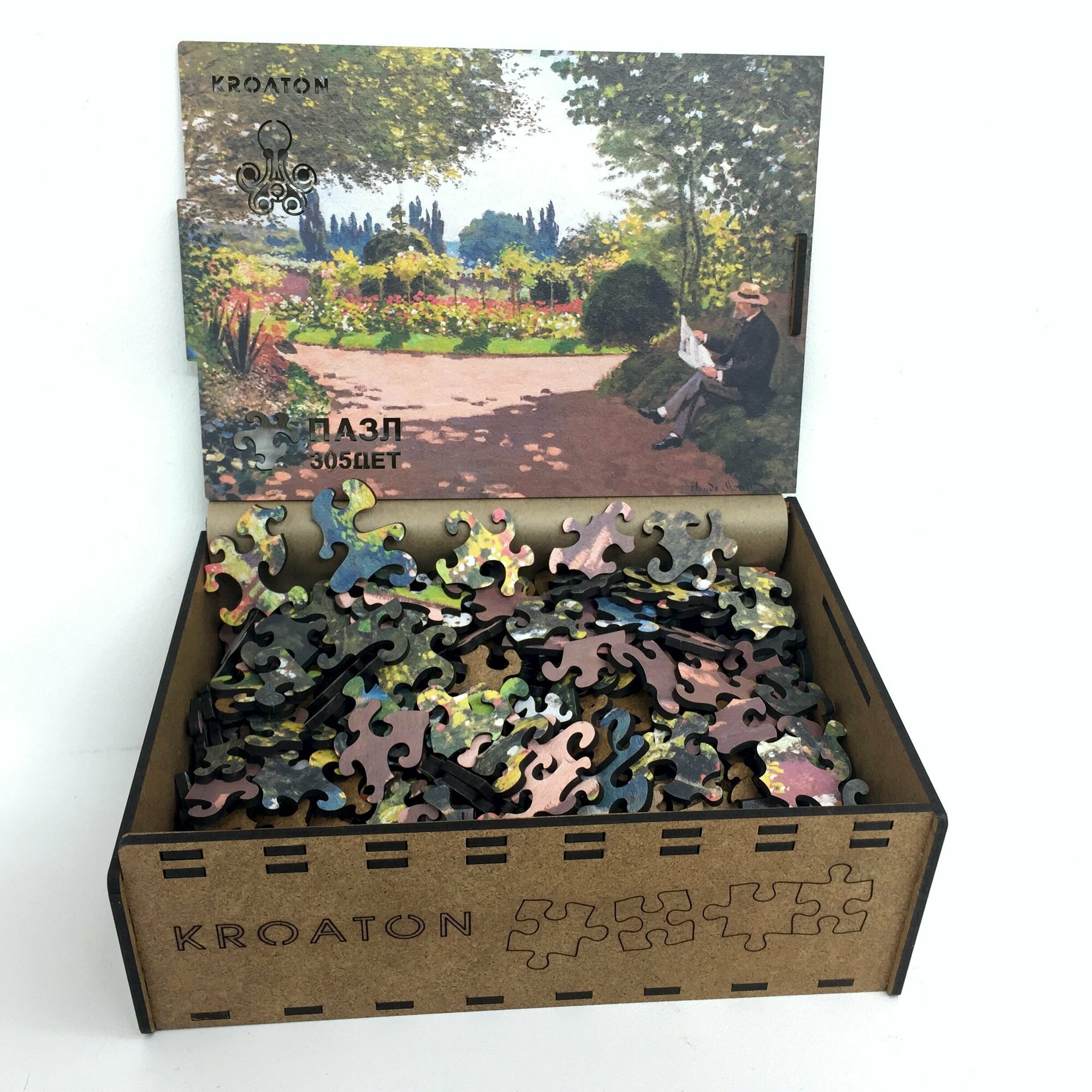 Деревянный фигурный пазл Kroaton Клод Моне Чтение в саду 305 деталей 41*29 см информация:
