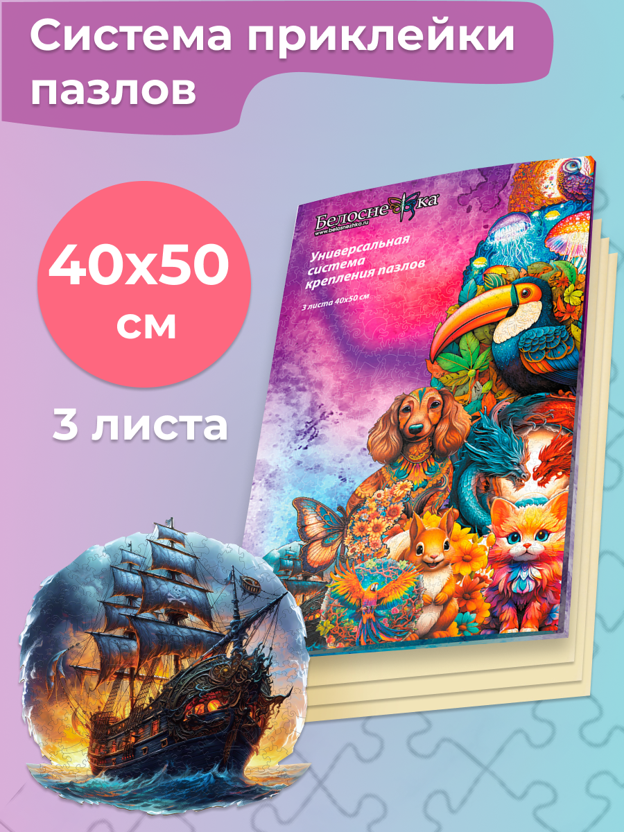 Система приклейки для деревянных пазлов Белоснежка 3 клеевые пленки 40х50 информация: